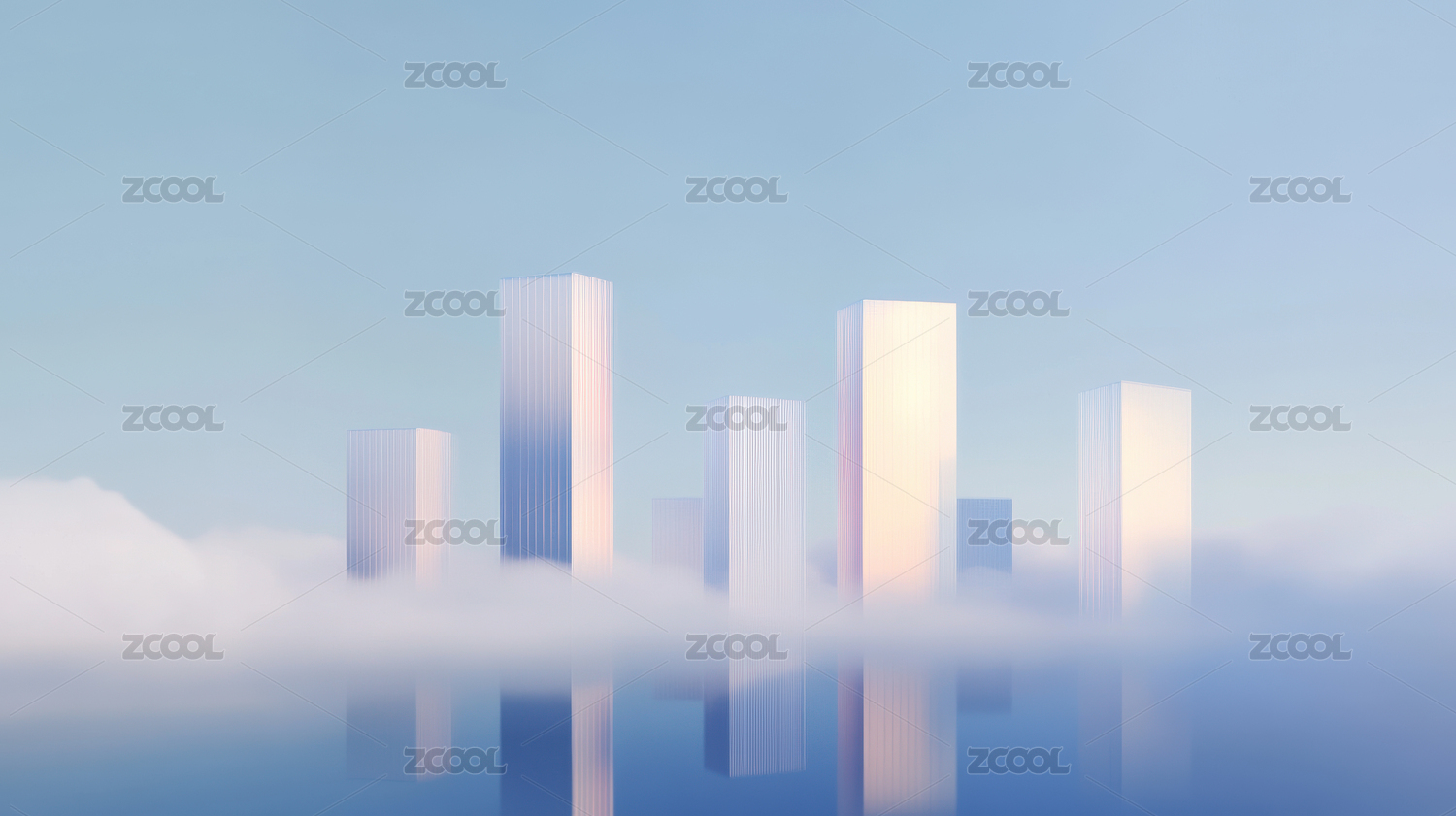 未来,蓝色,现代,天空,城市,天际线,建筑,绿色,高楼,云雾