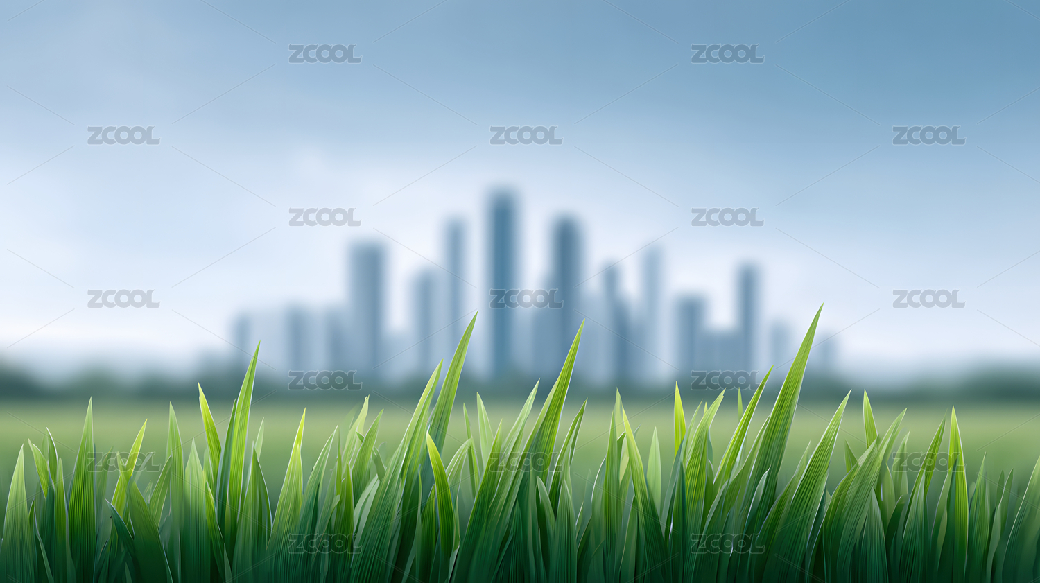 绿色田野与城市天际线