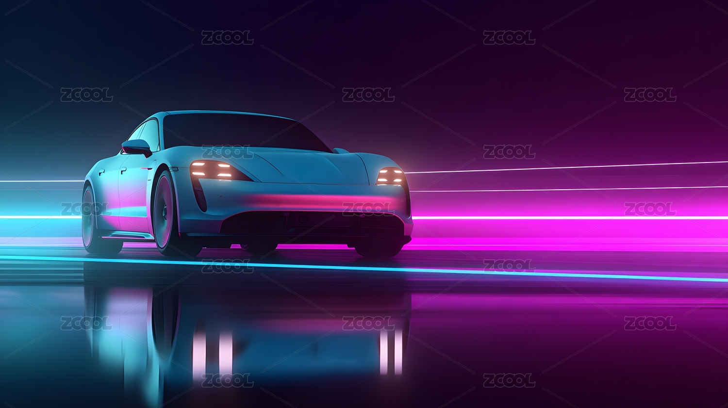汽车复古蒸汽波霓虹灯抽象艺术风格怀旧插画