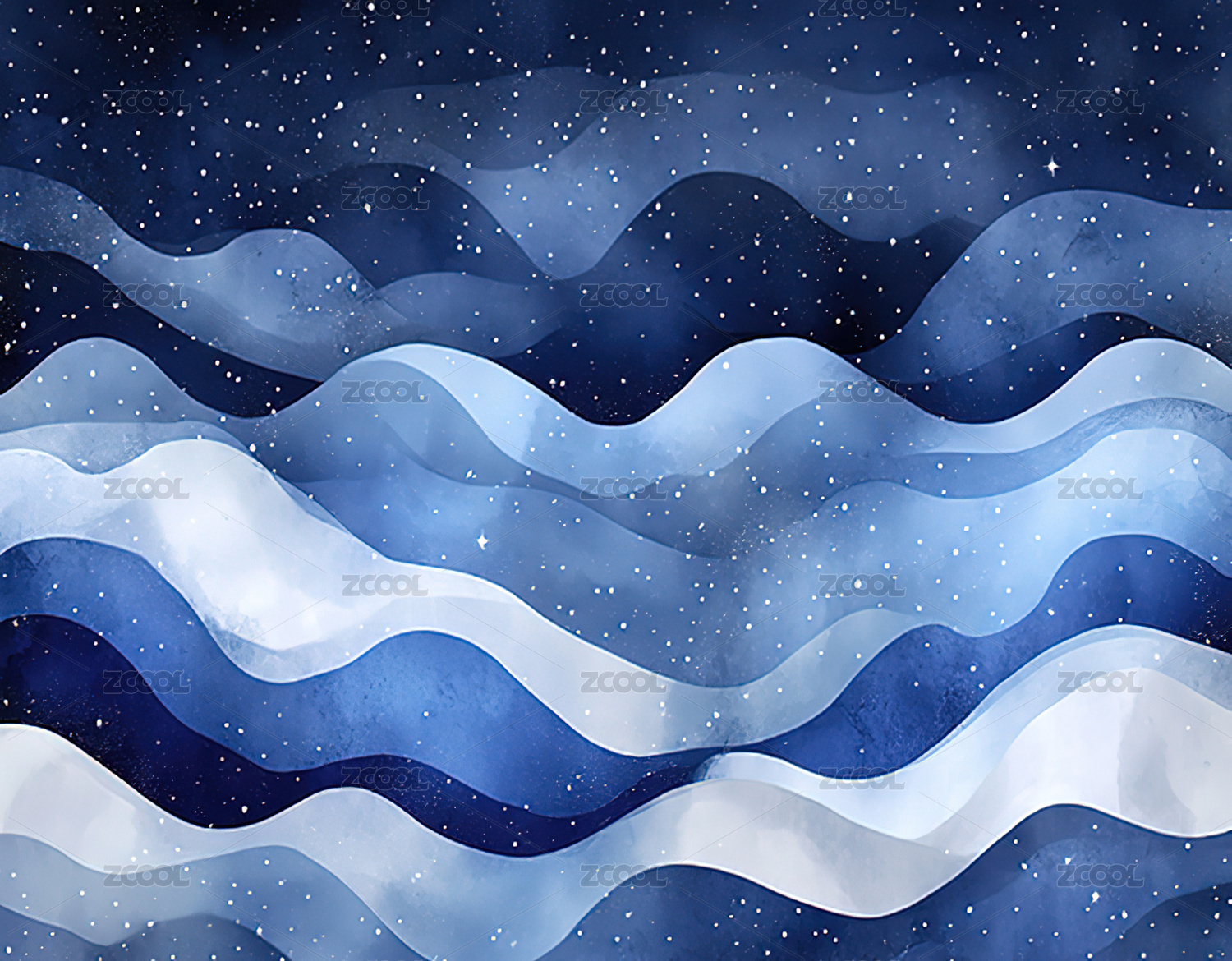 深邃蓝色波浪与星空点缀的梦幻图景