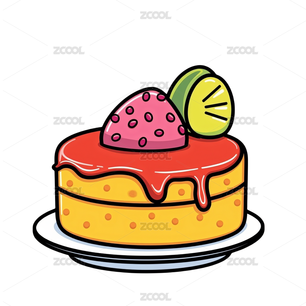 小蛋糕光影艳丽色彩食物潮流矢量插画