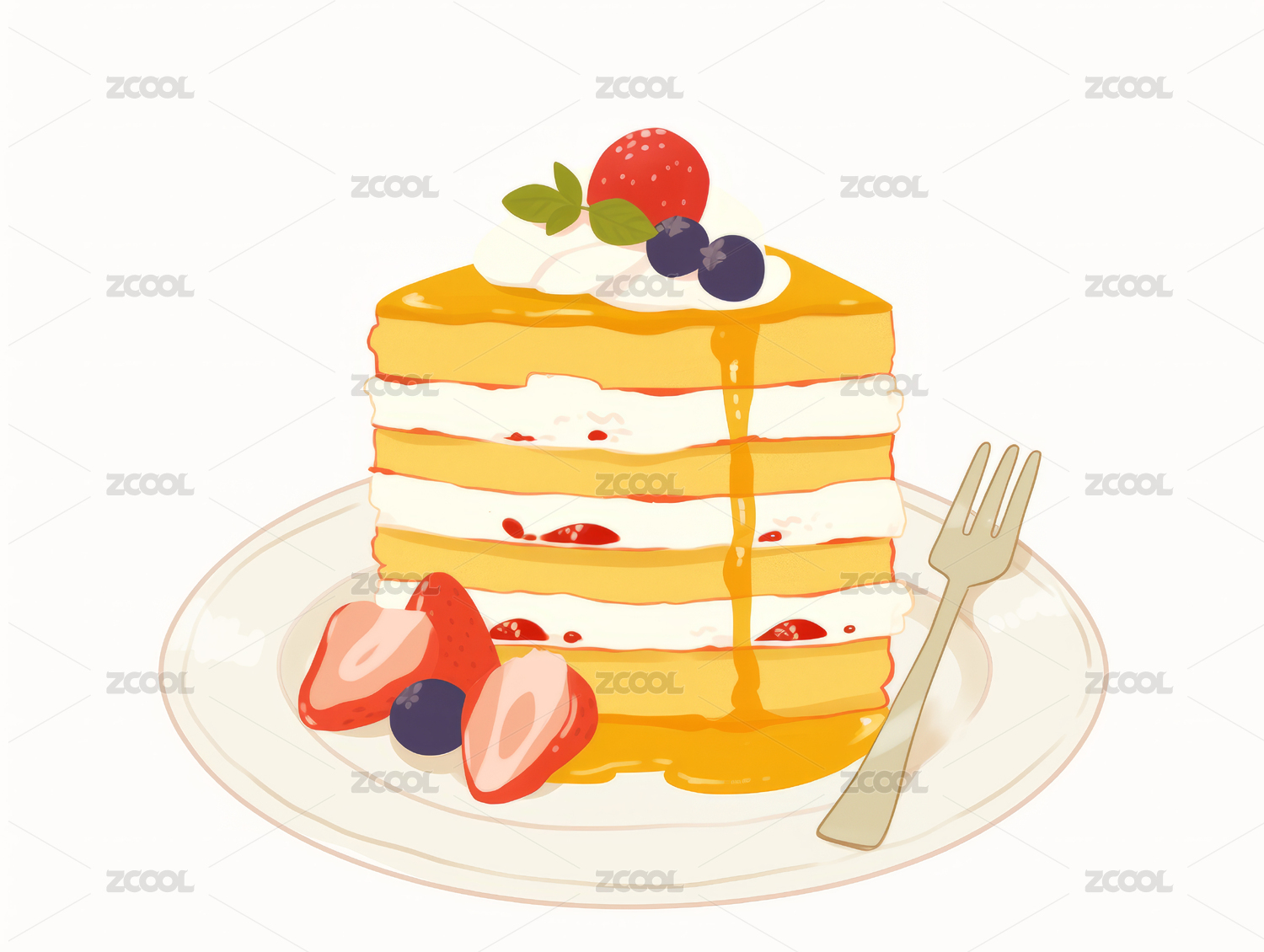 浆果蛋糕甜品下午茶果酱蛋糕水彩手绘