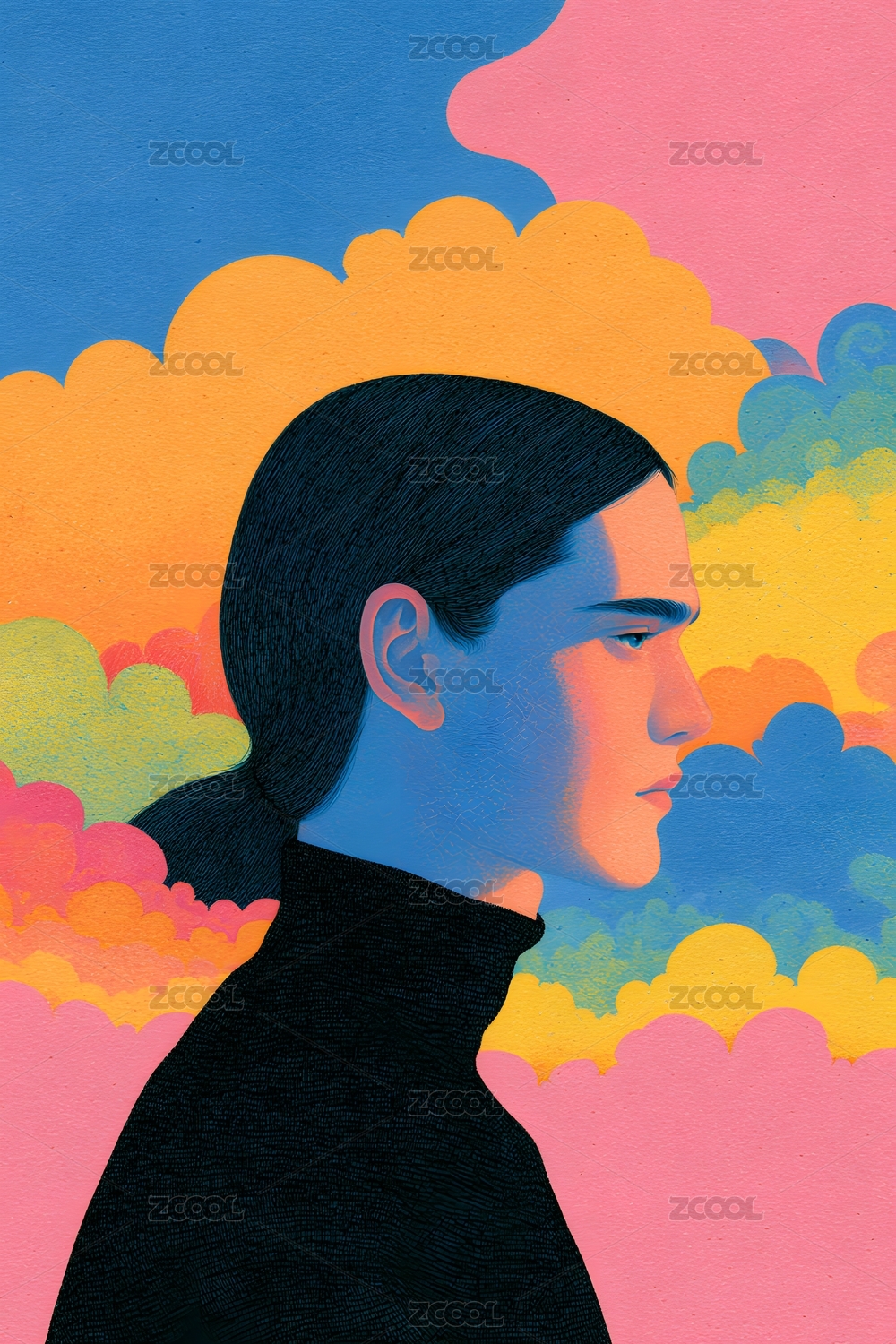 半脸少女情绪云朵粉蓝调