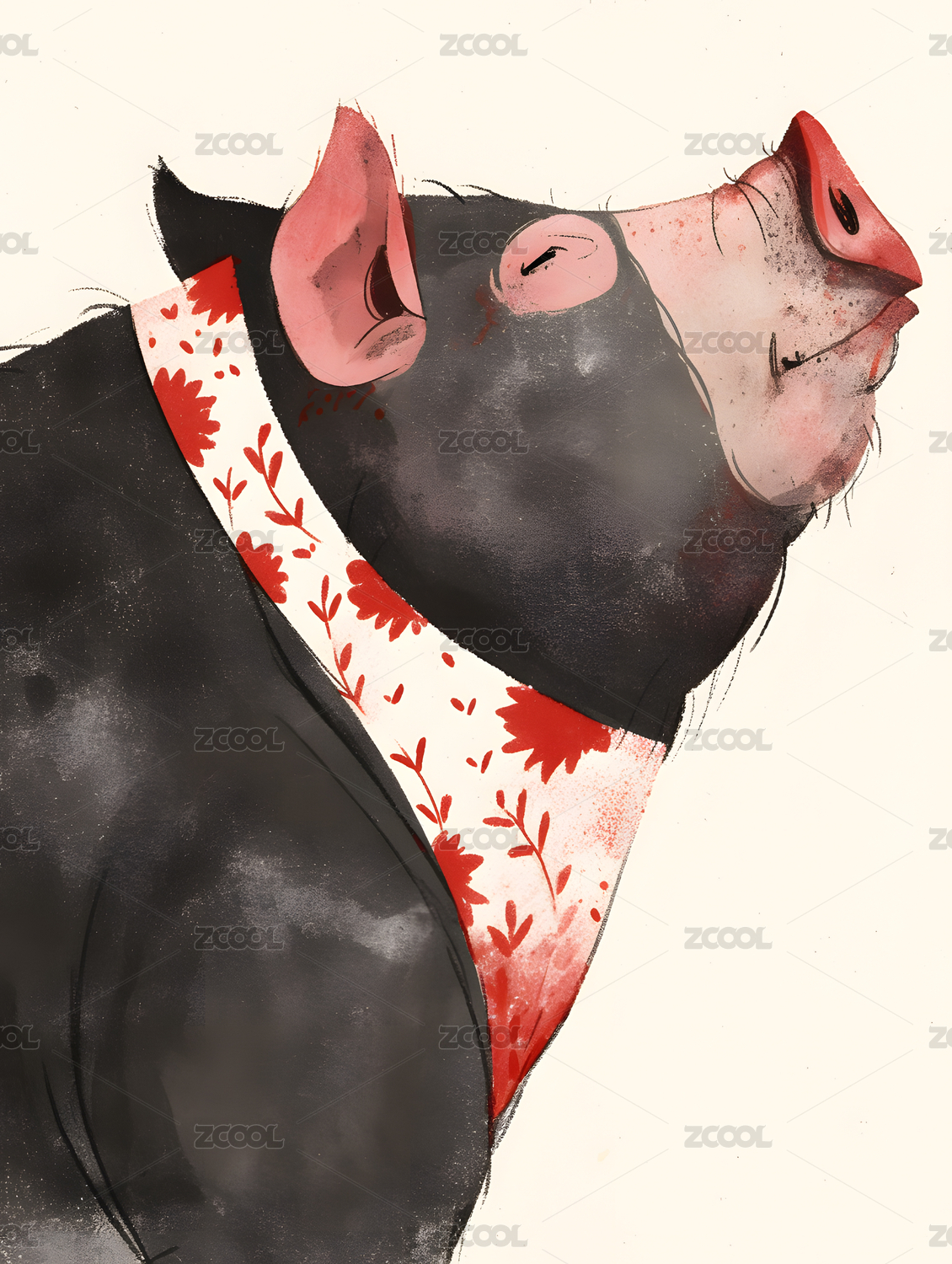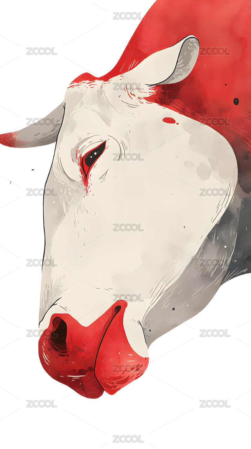 水墨红色色调动物插画