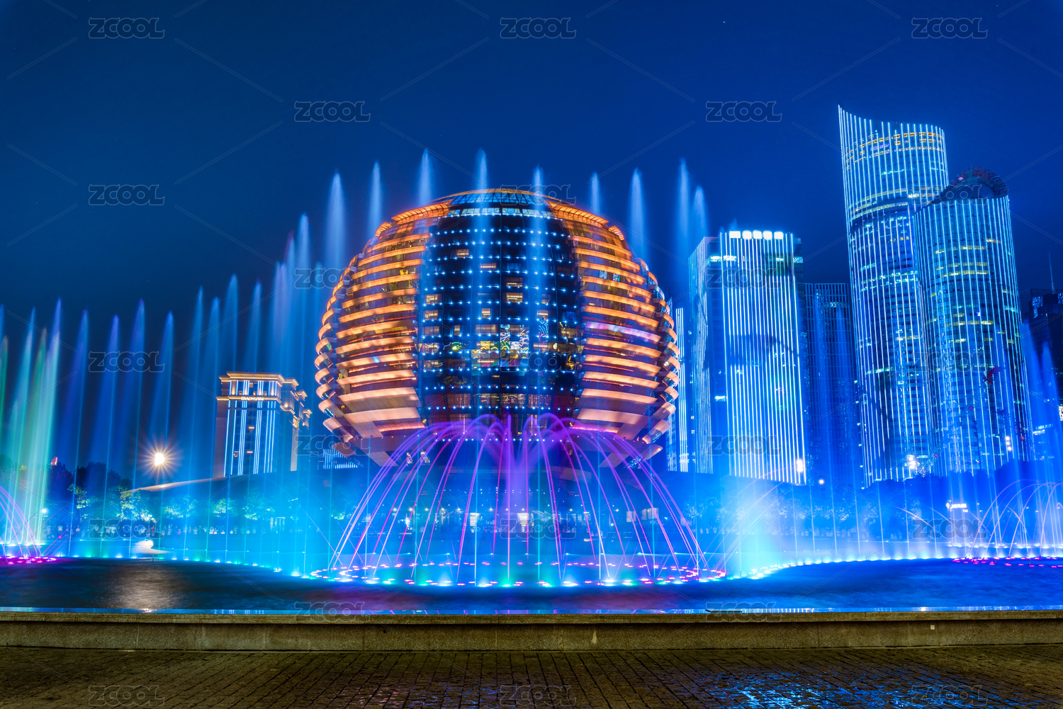 杭州,钱江新城,音乐喷泉,夜景,夜色,城市,建筑,地标,霓虹灯,灯火通明