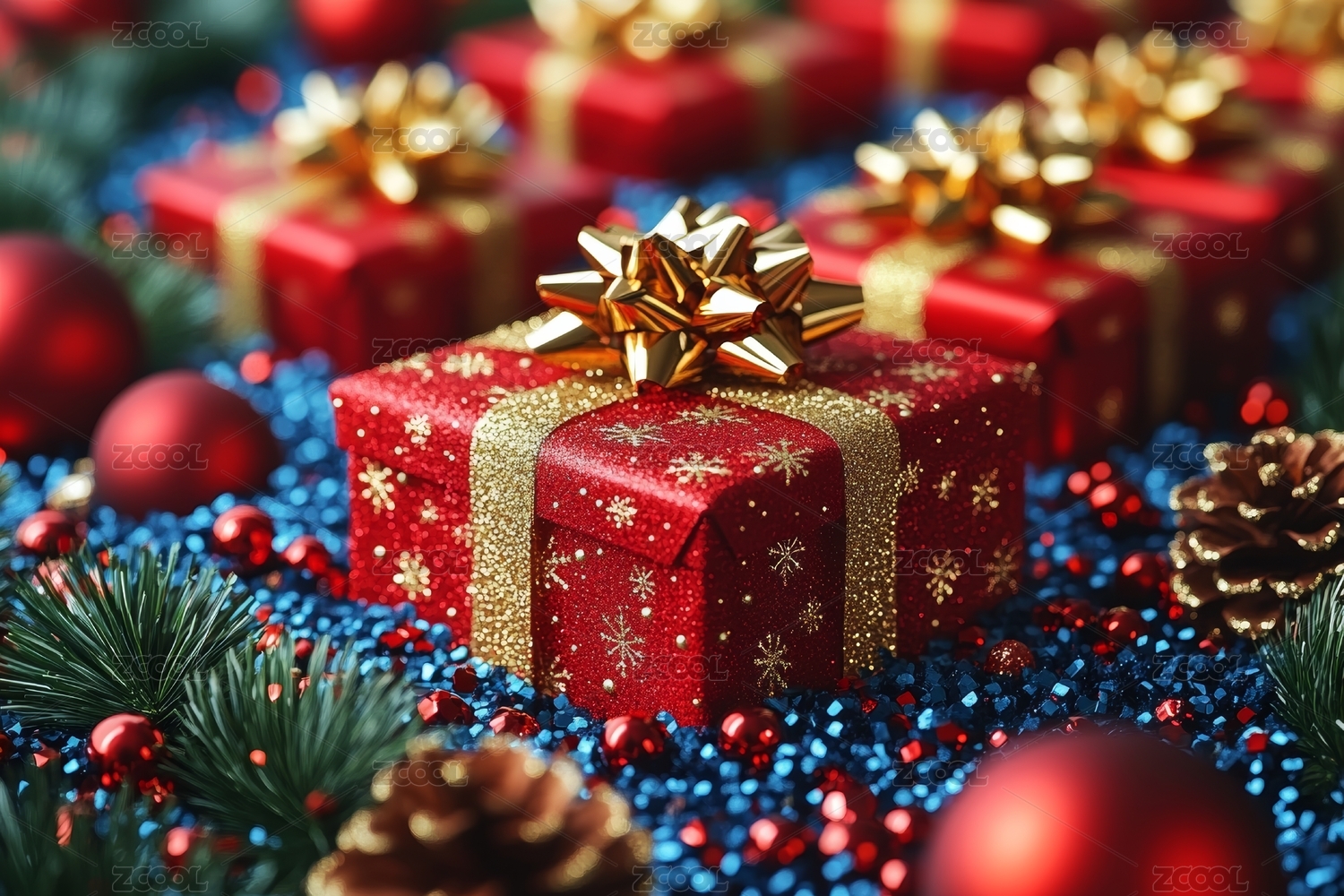 圣诞节,圣诞,圣诞树,彩灯,礼物盒,冬青叶,红果,雪花,节日,温馨
