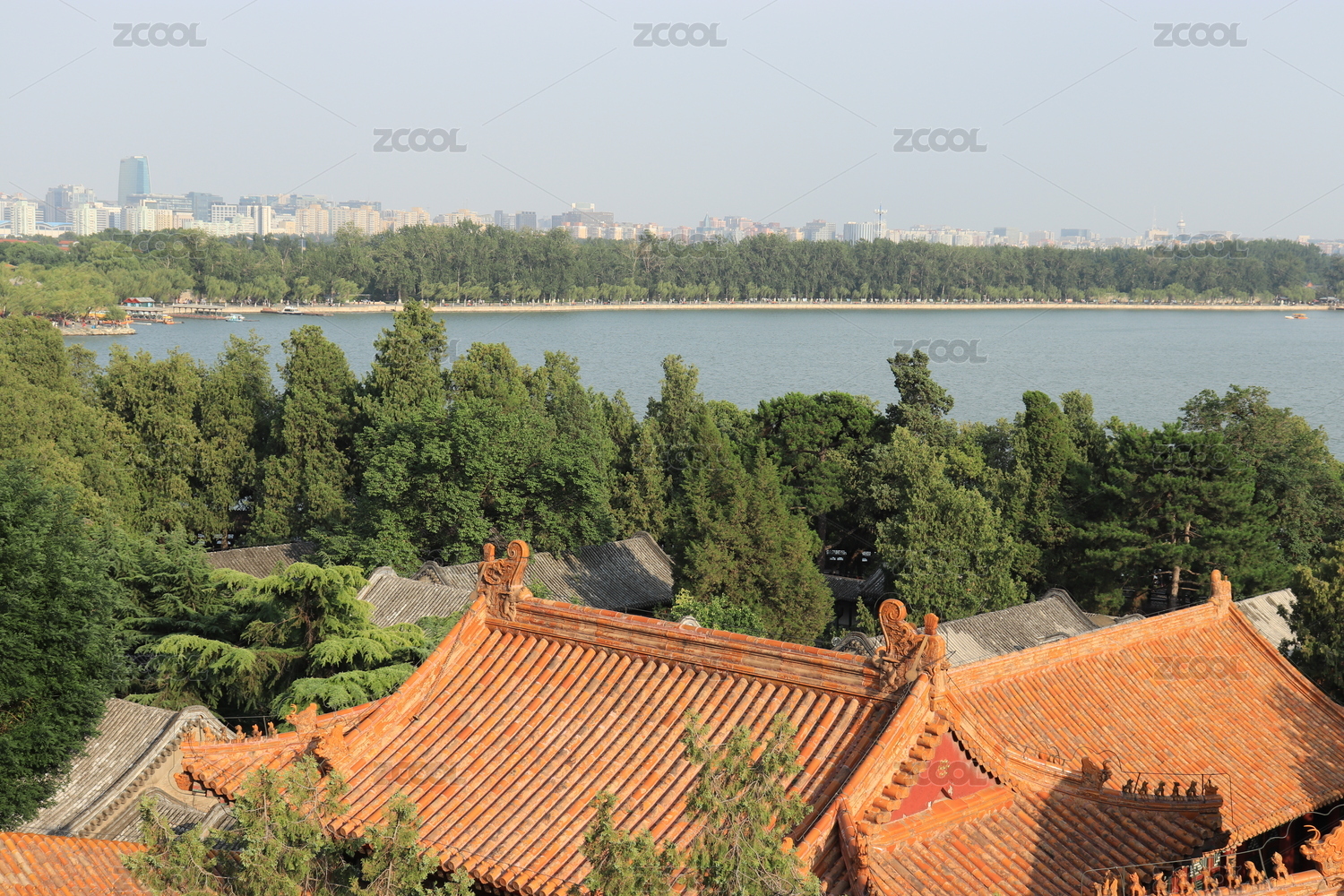 中国北京市颐和园排云殿古建筑和昆明湖风光