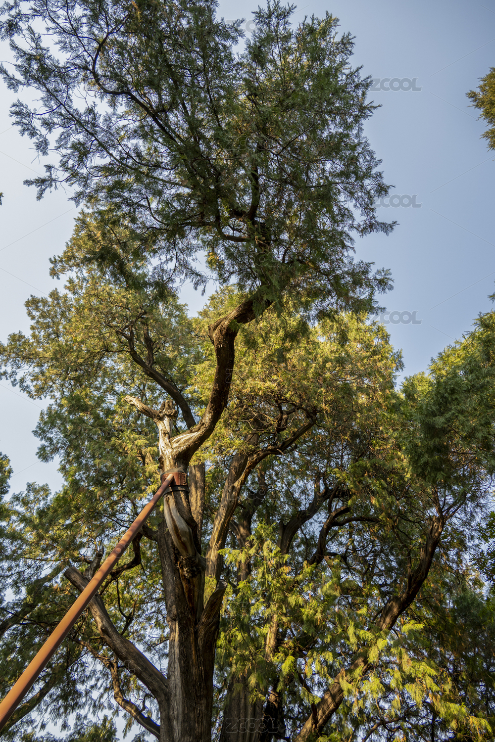 中国川西毕棚沟初冬晴天的树木与蓝天