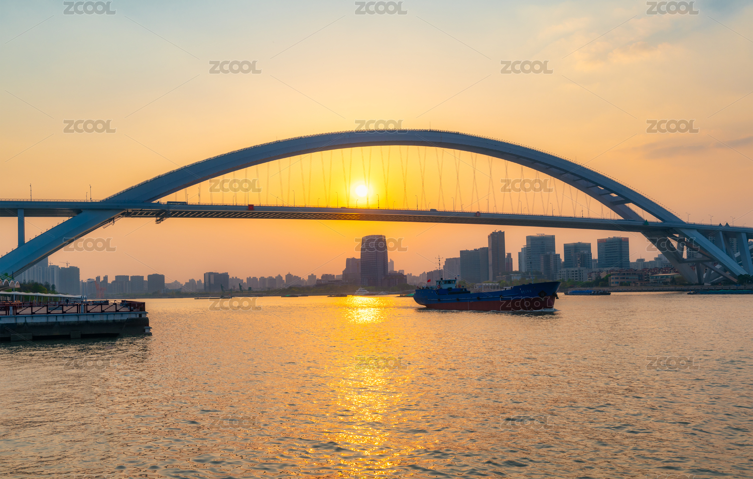 中国上海卢浦大桥落日