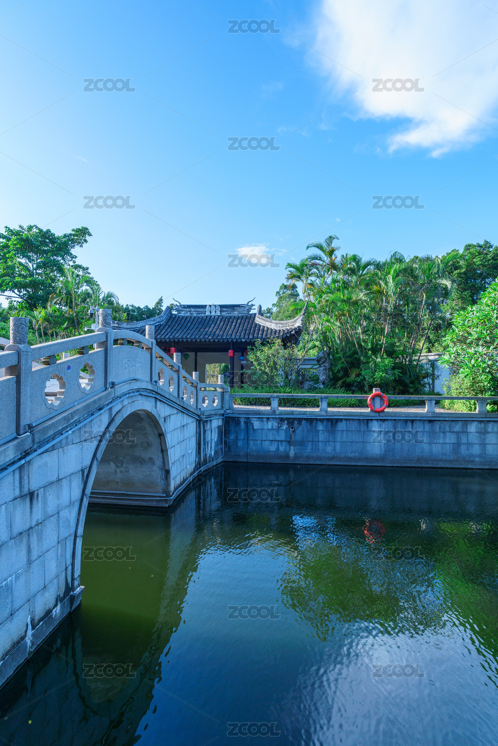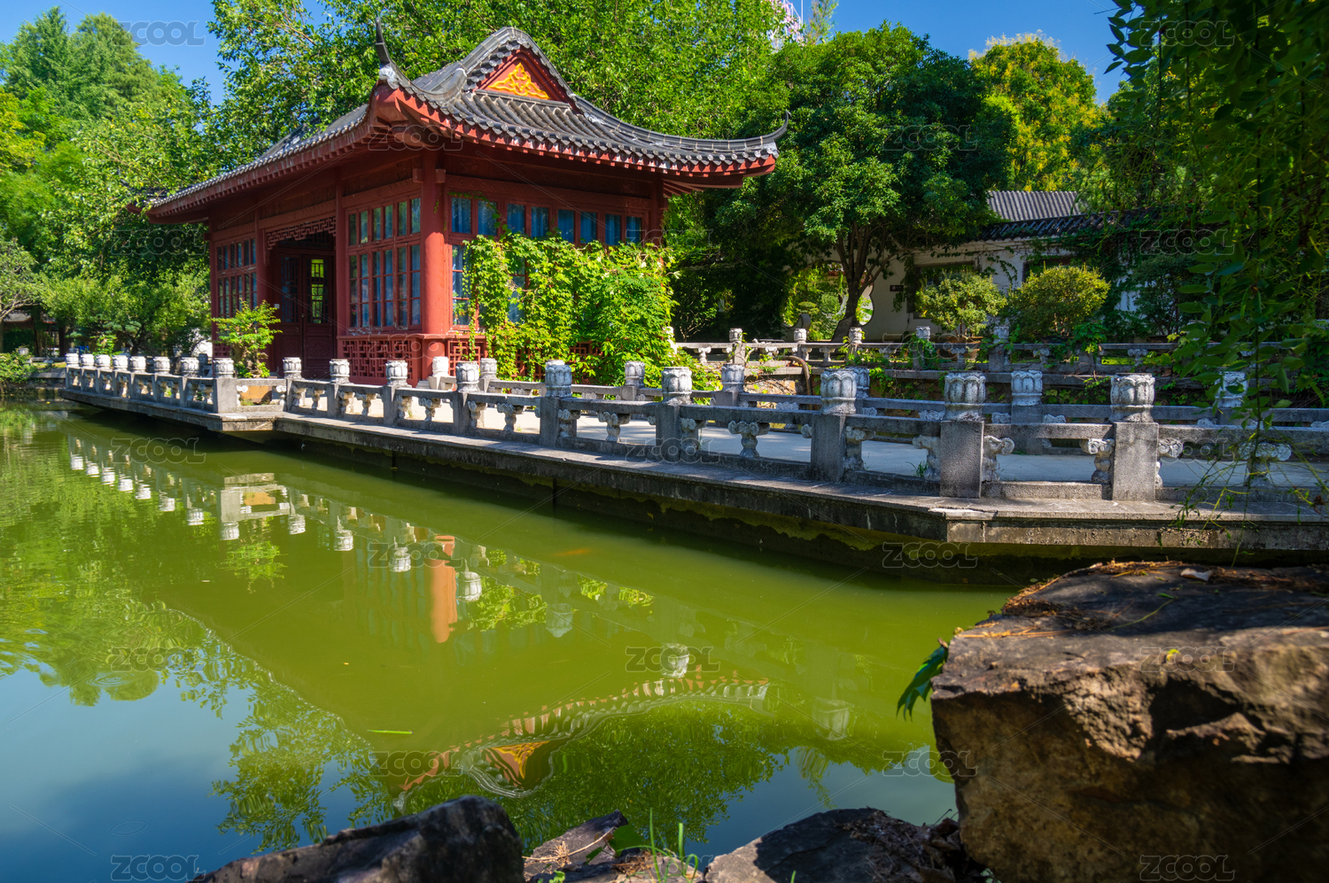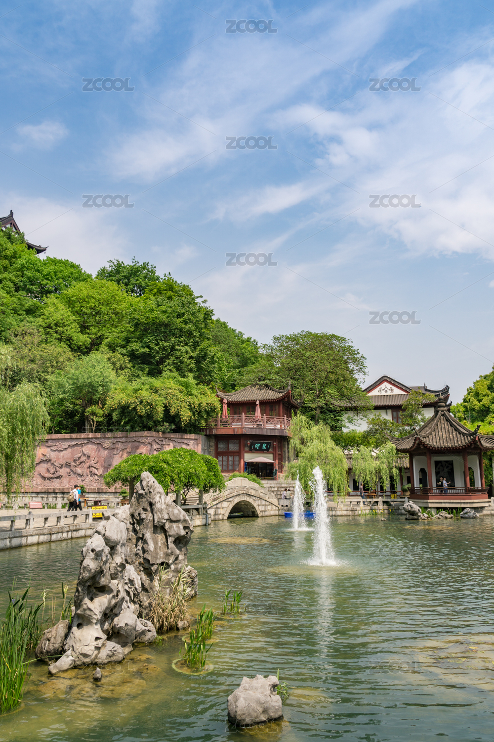 中国湖北武汉黄鹤楼景区小桥流水园林景观