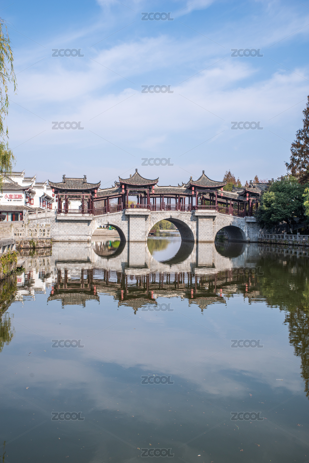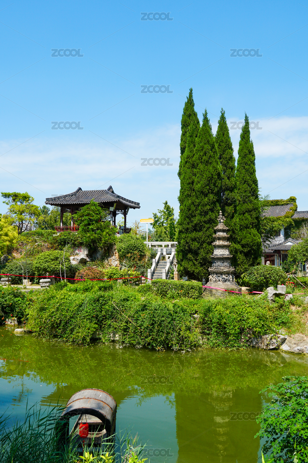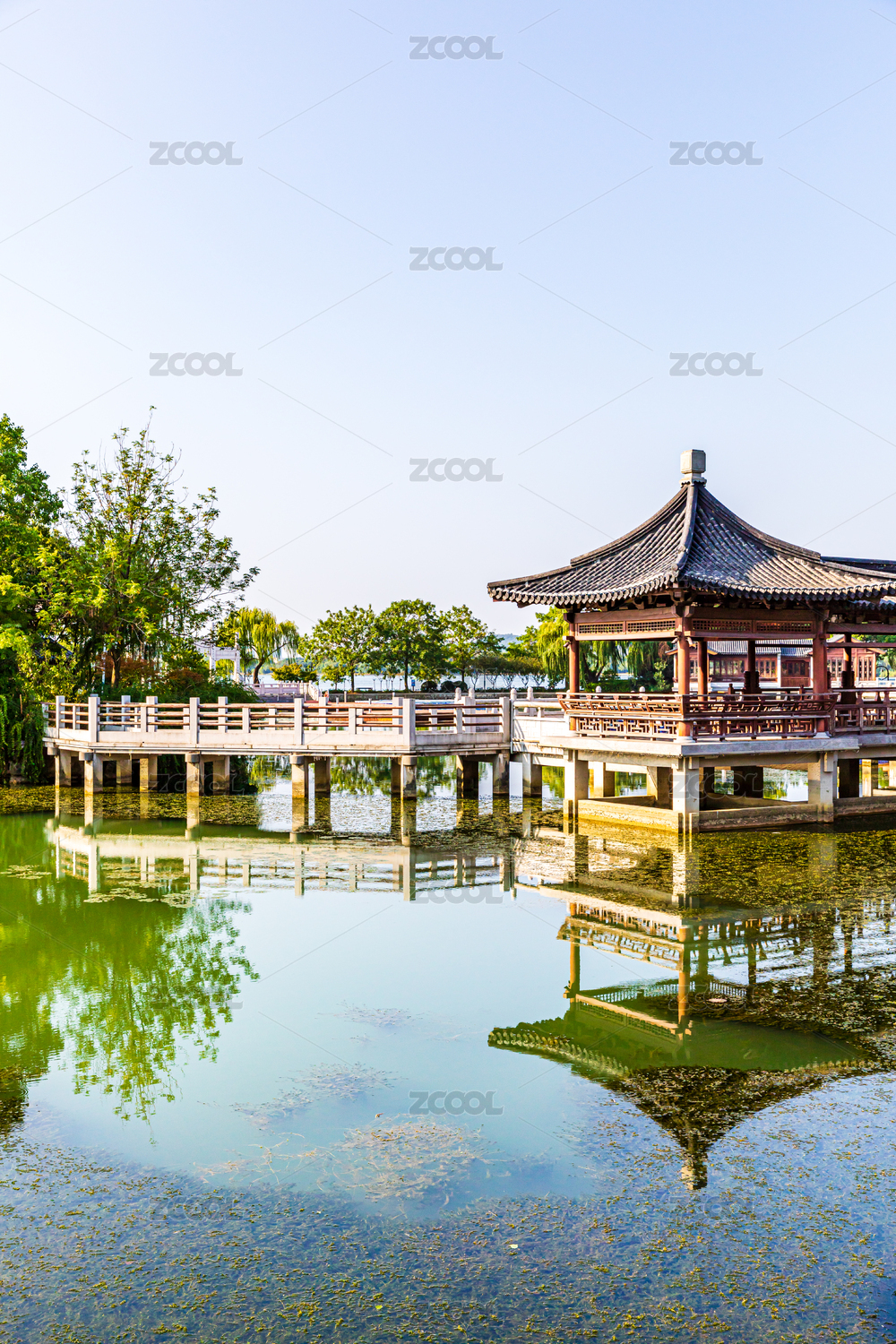 中国湖北武汉黄鹤楼景区小桥流水园林景观