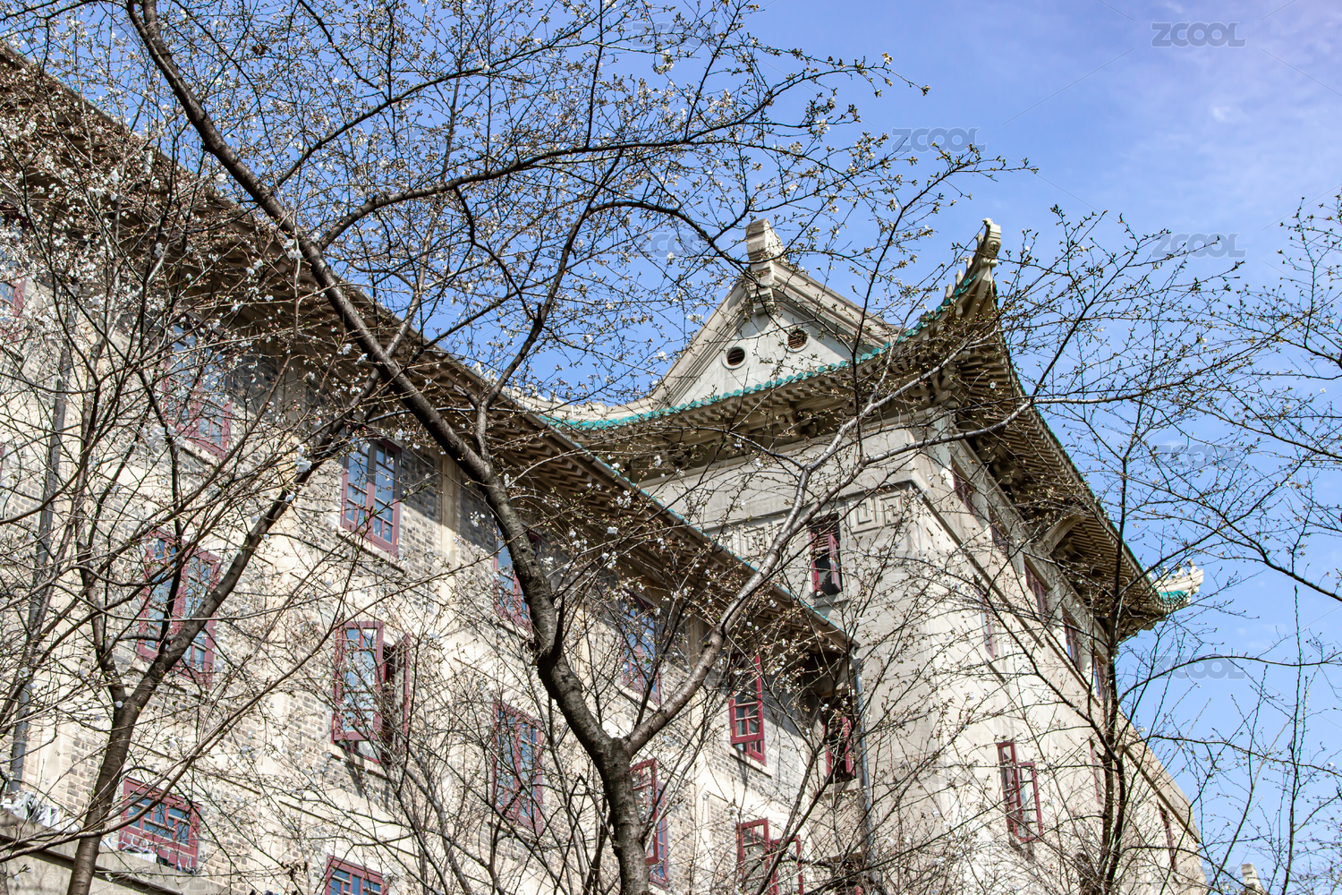 武汉大学樱花大道樱花季老斋舍樱顶