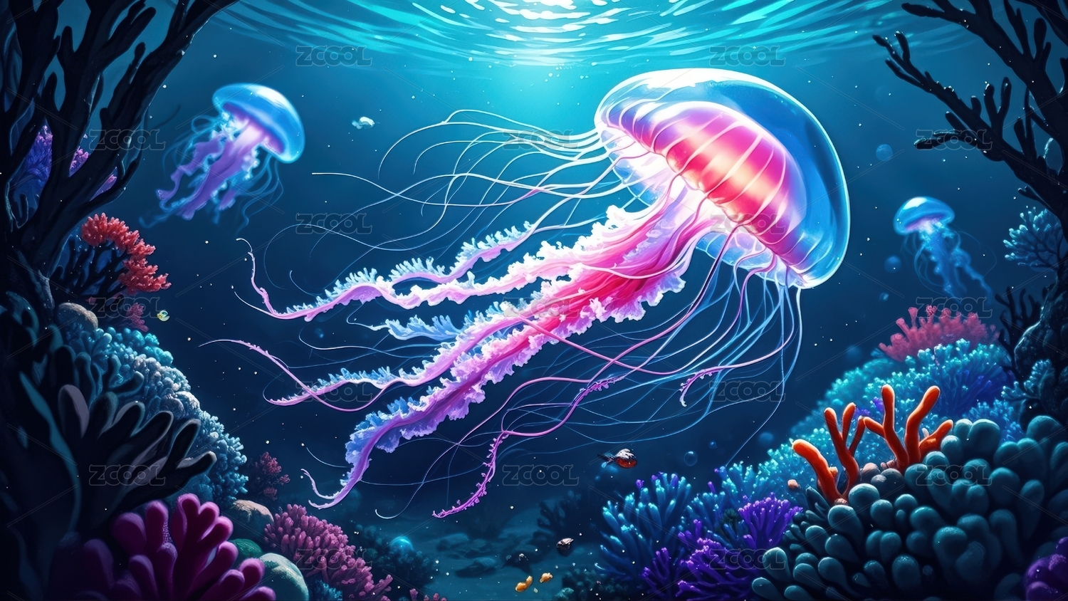 梦幻水母与珊瑚礁
