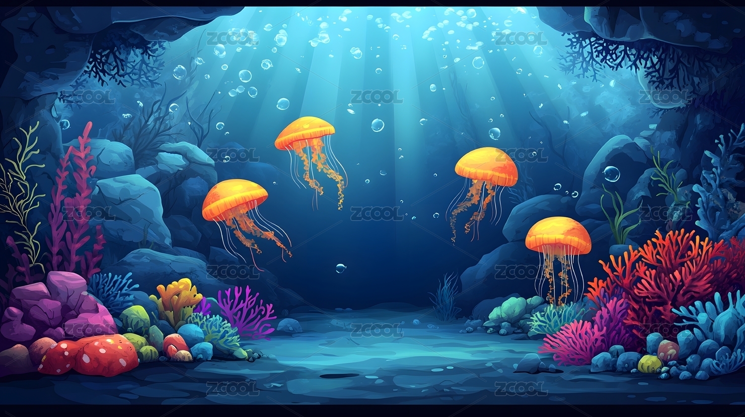 水母海底珊瑚插画