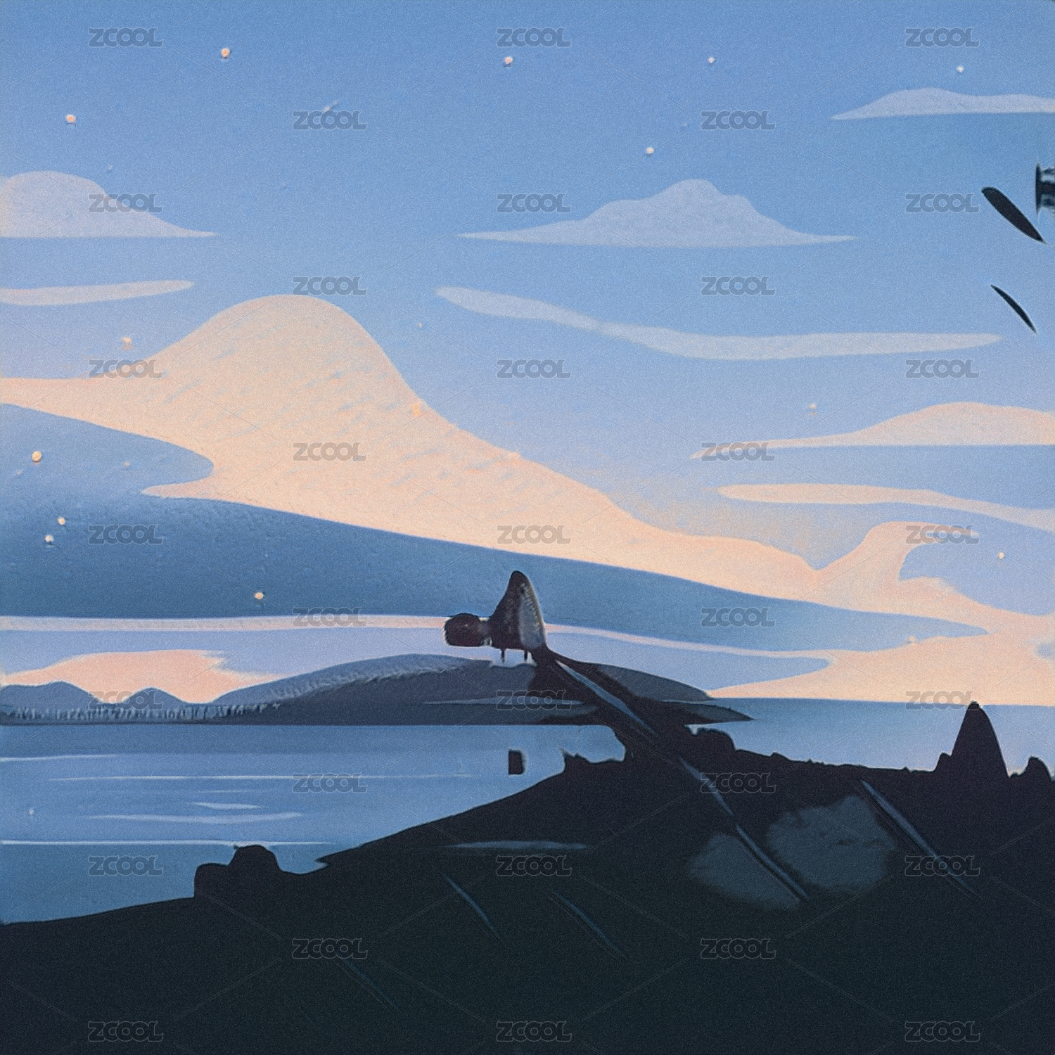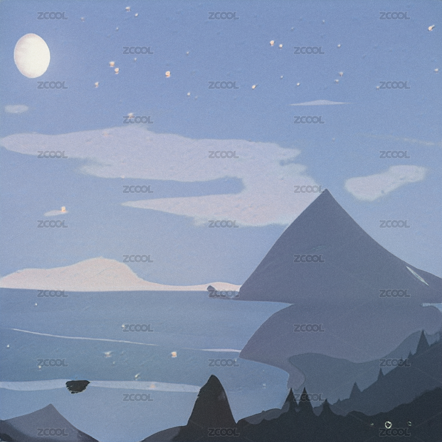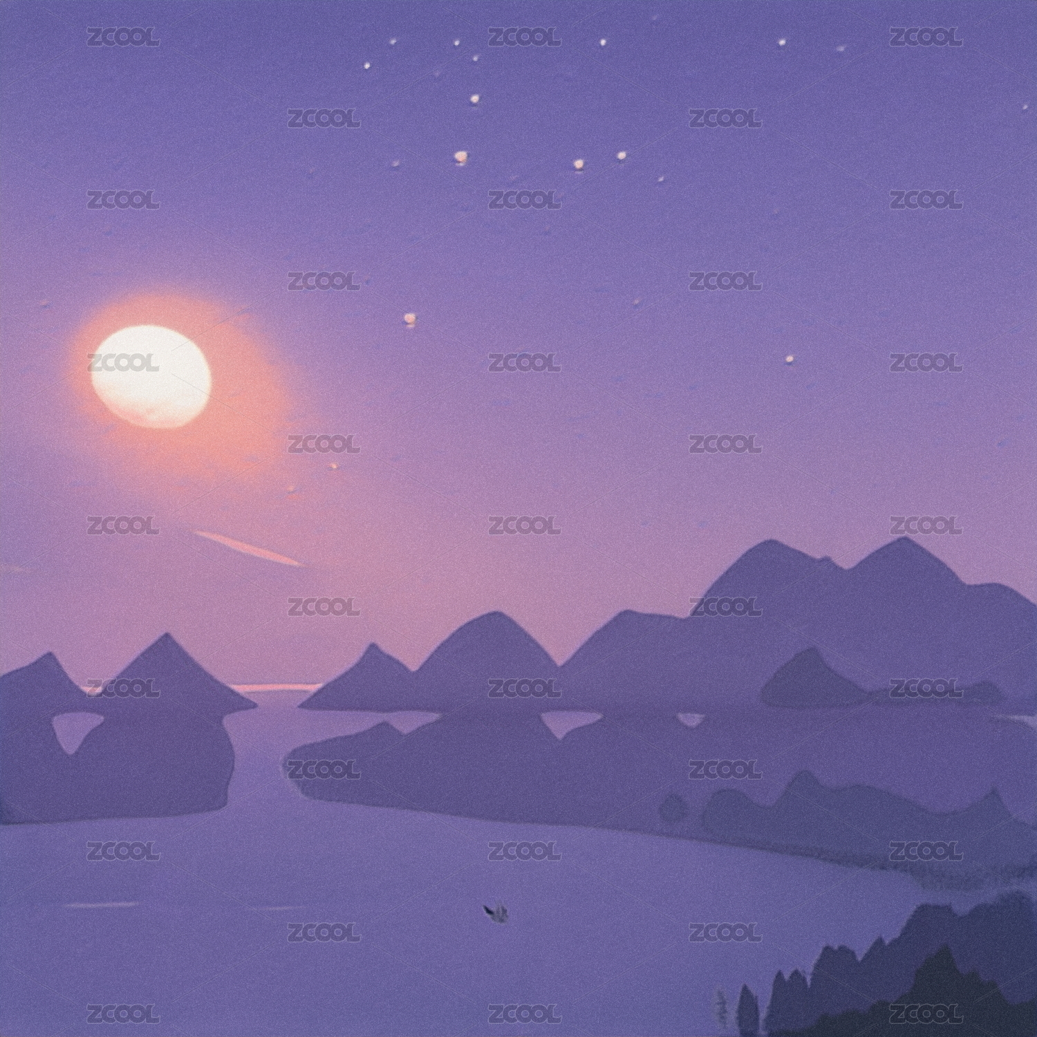 插画,风光,自然,天空,山脉,河流,河,大海,海洋,数目