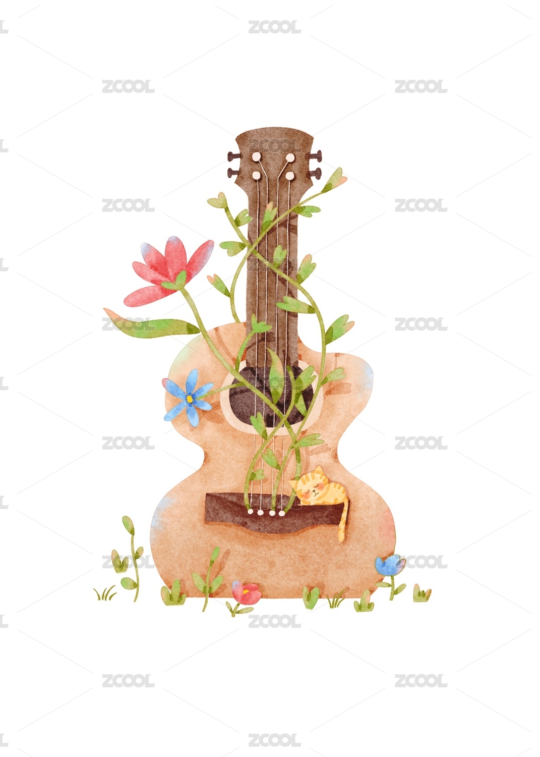 吉他,尤克里里,乐器,花,莲花,小麦,叶子,植物,自然,宁静