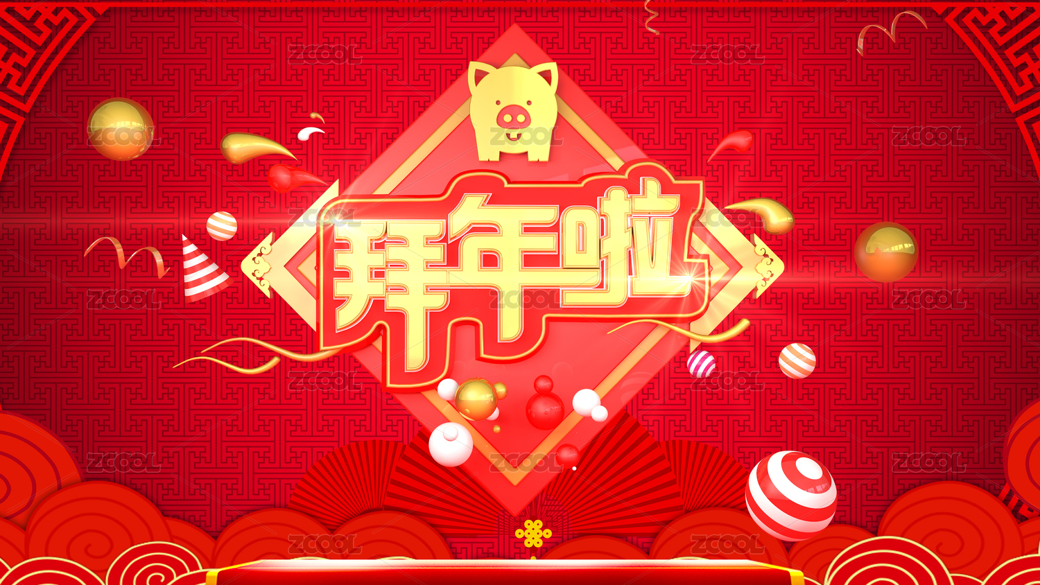 新年快乐2020年鼠年春节过年啦字体可爱卡通矢量