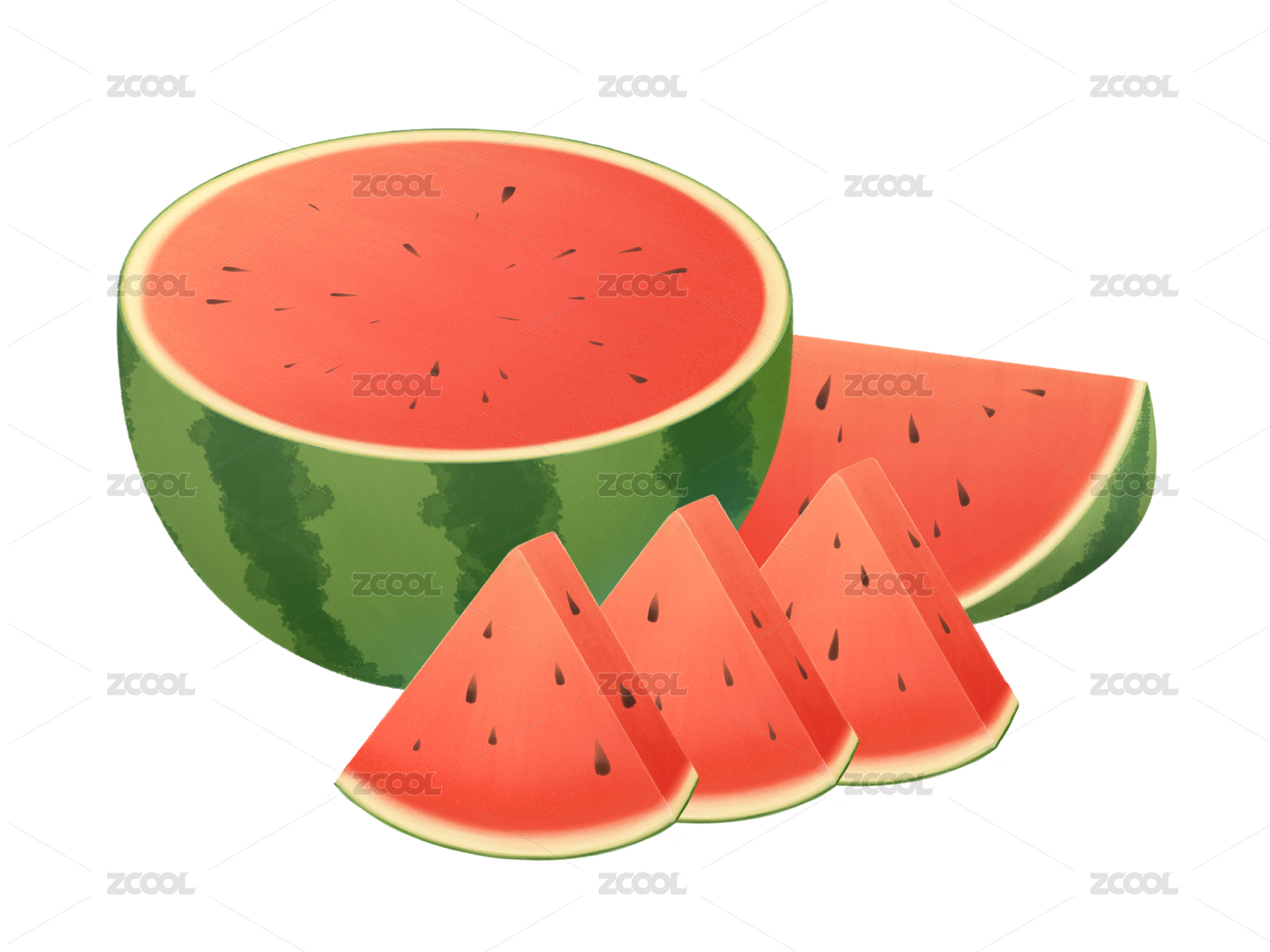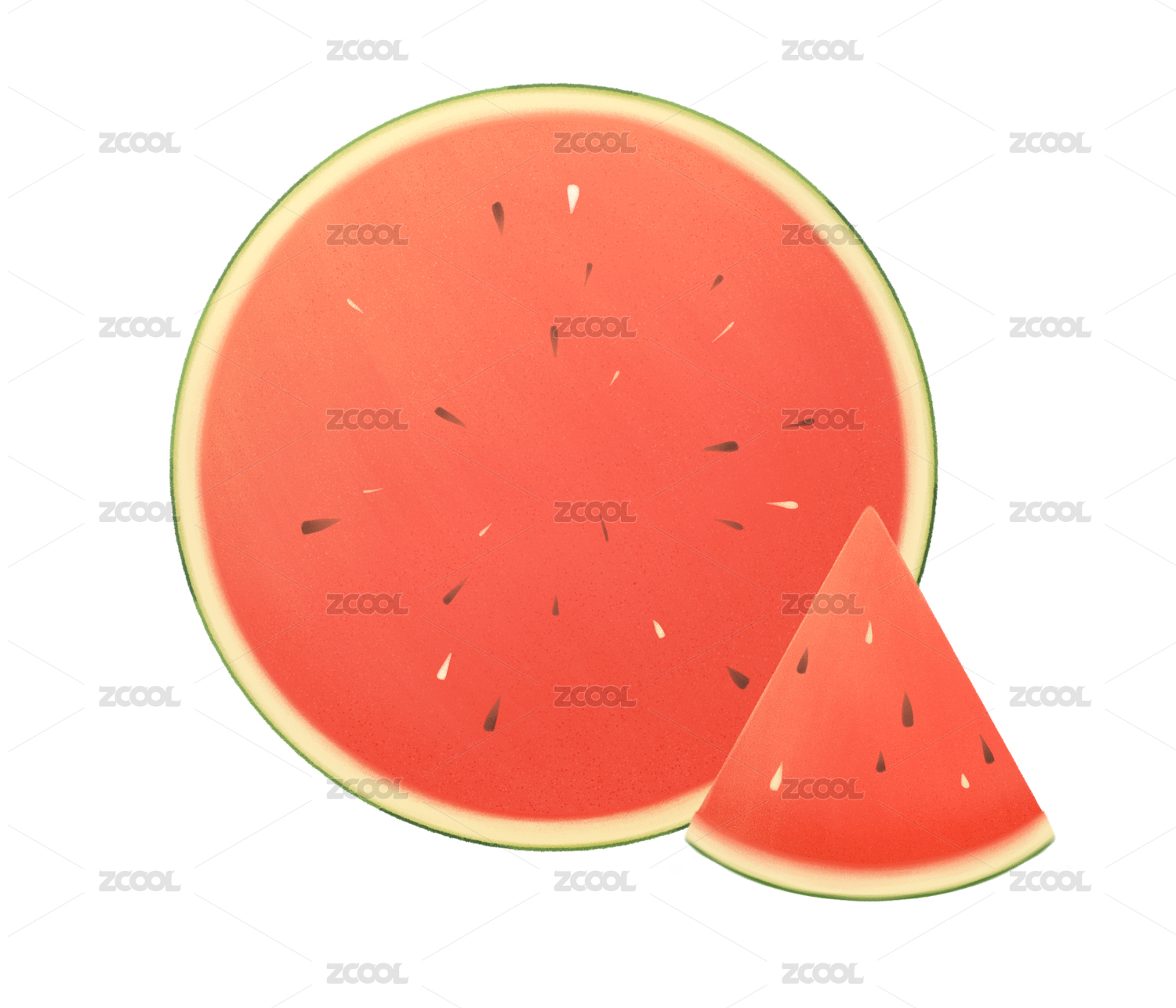 水彩西瓜切片