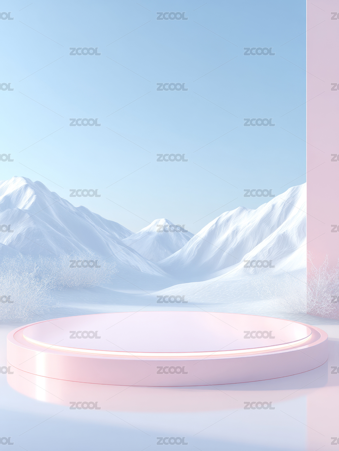 3D,雪山,渲染,天空,电商,展台,倒影,宁静,清凉