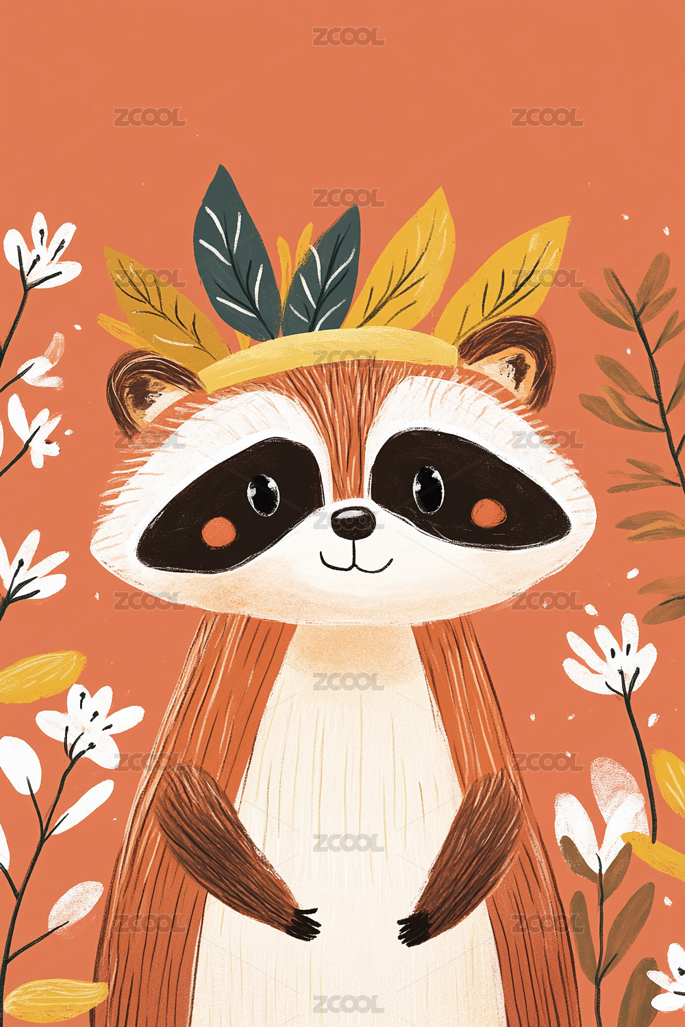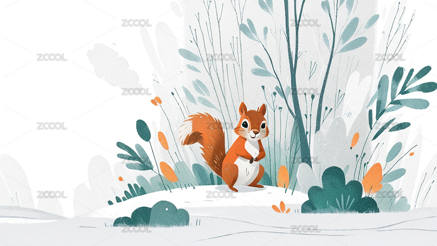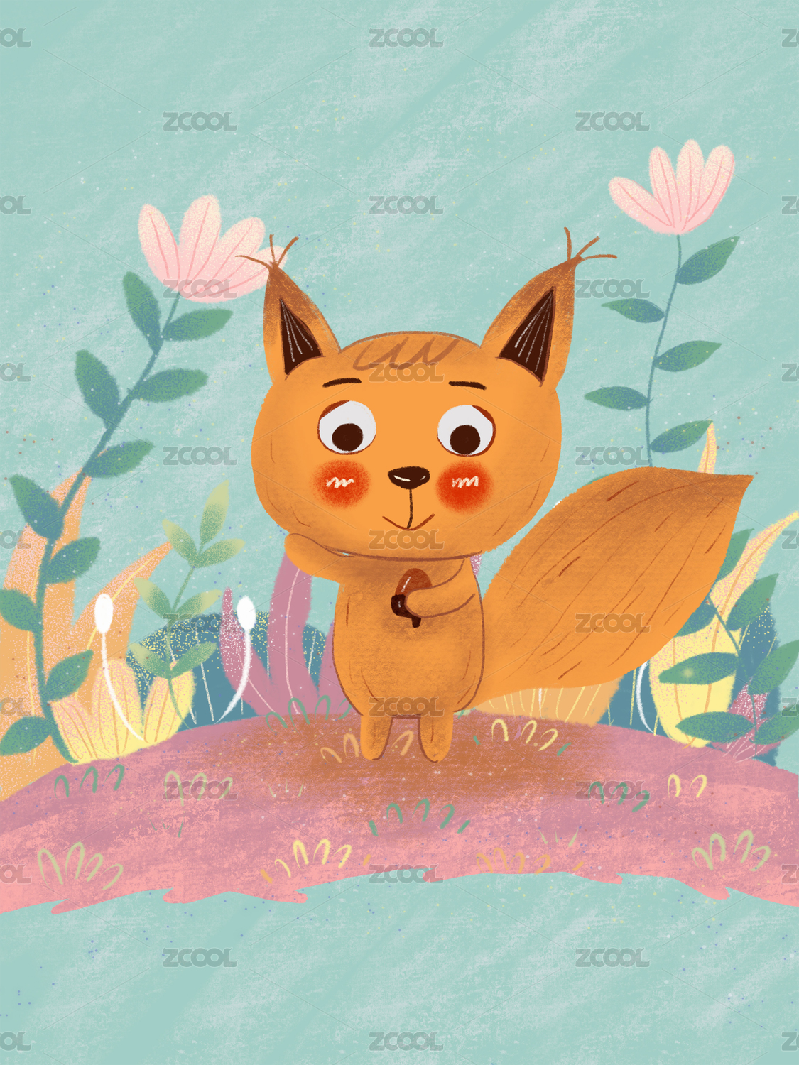 秋天下的可爱小动物宠物萌宠卡通漫画插画