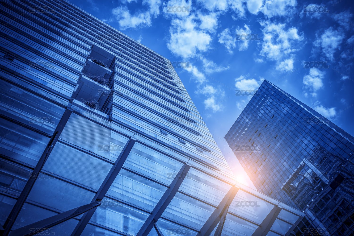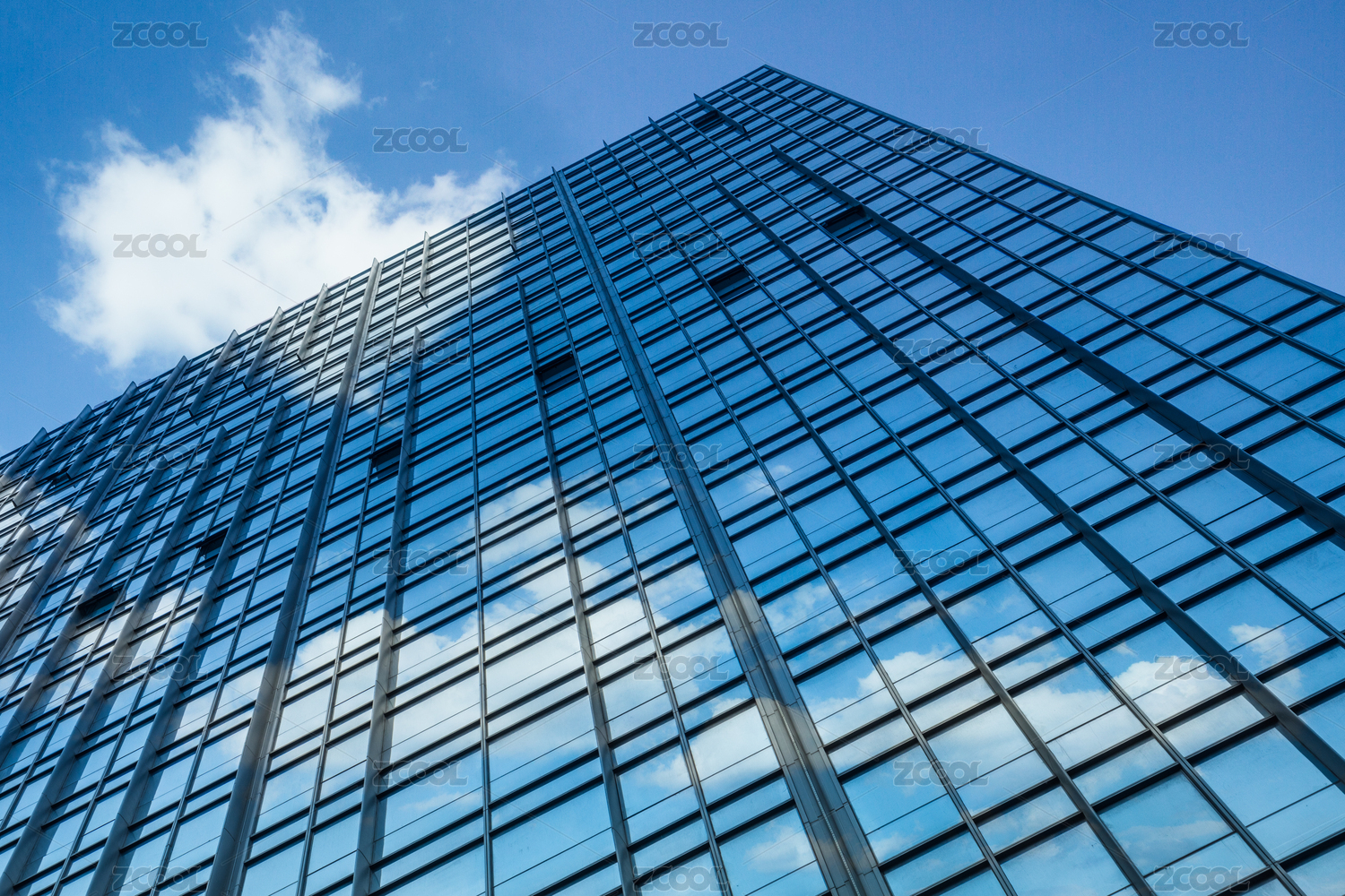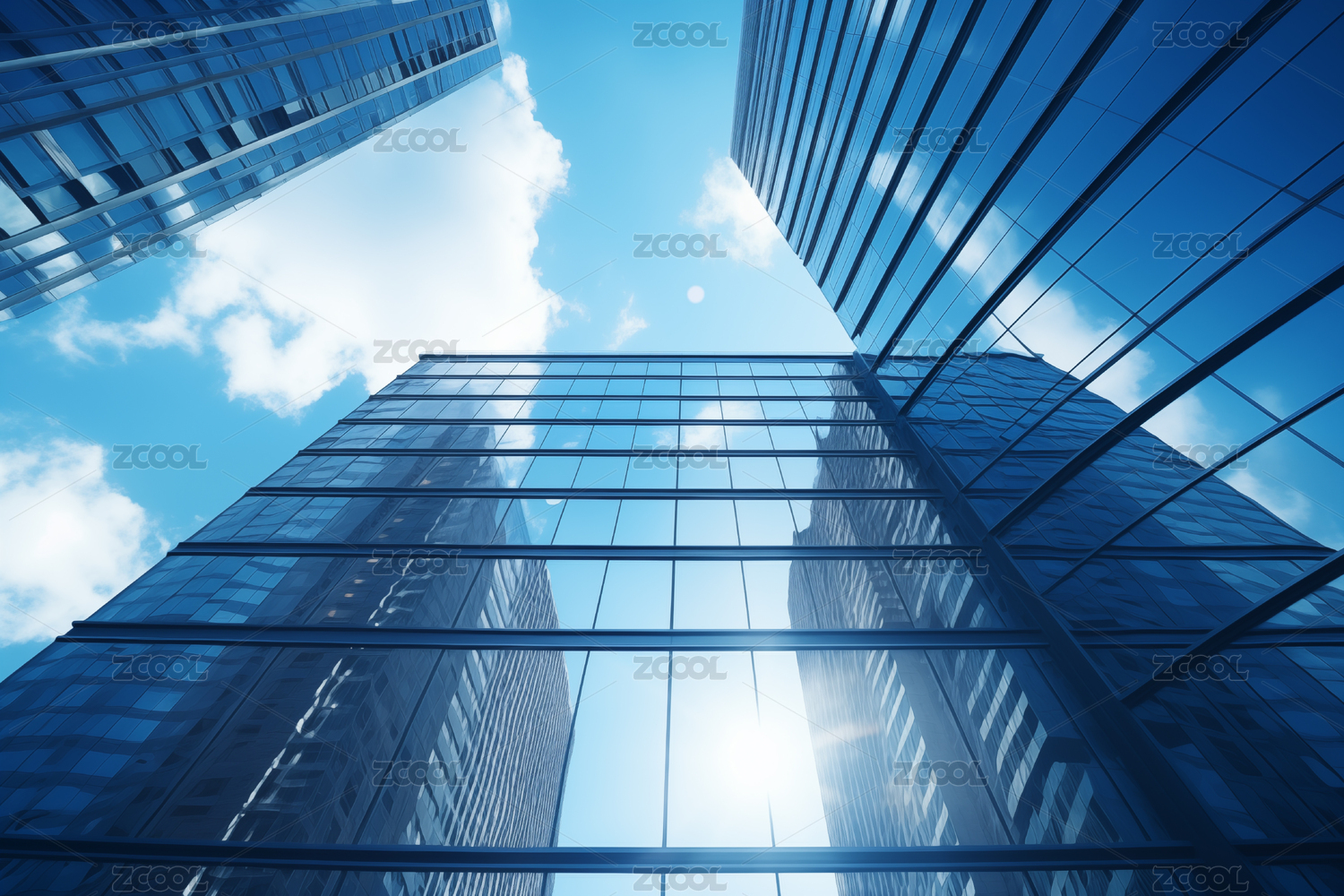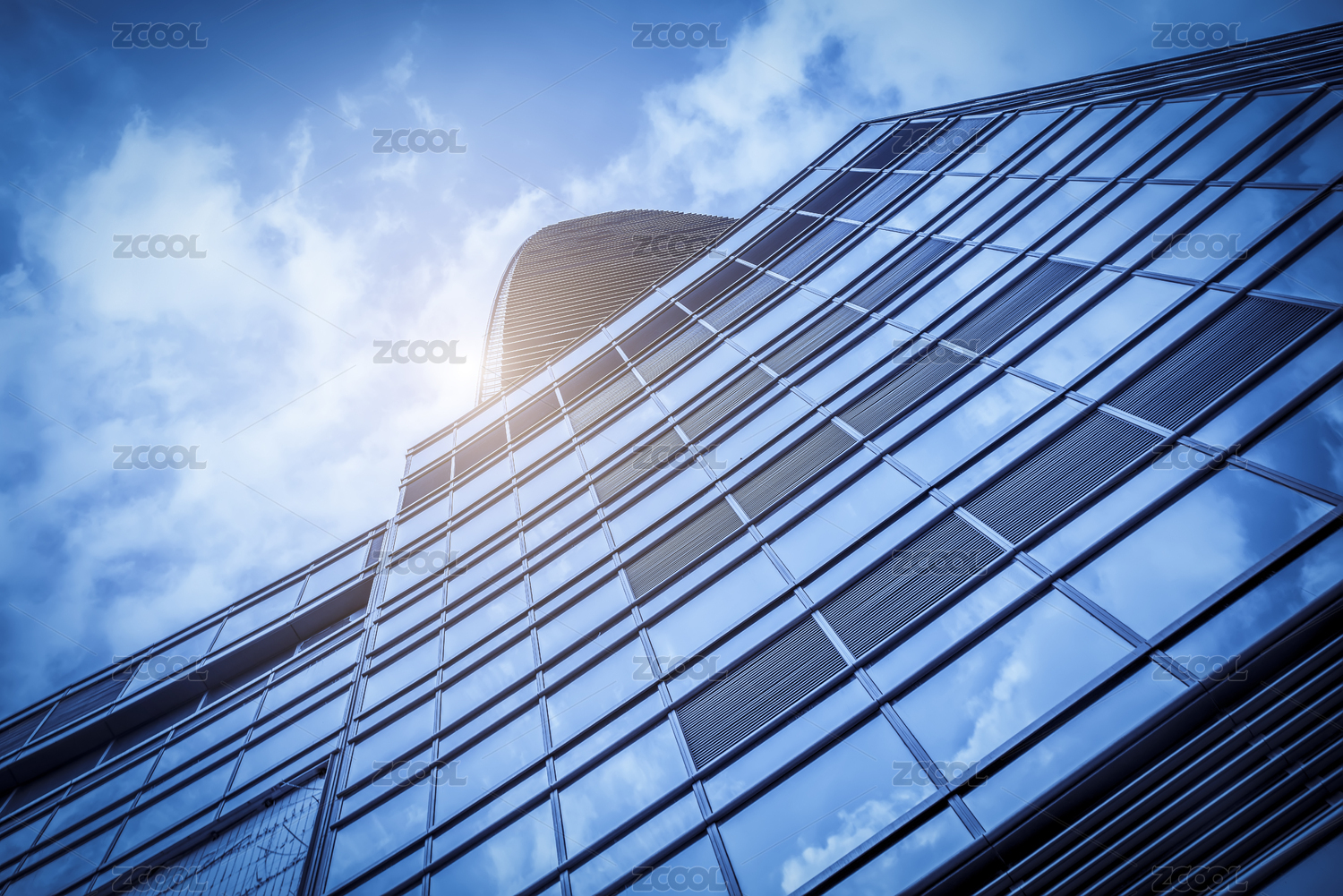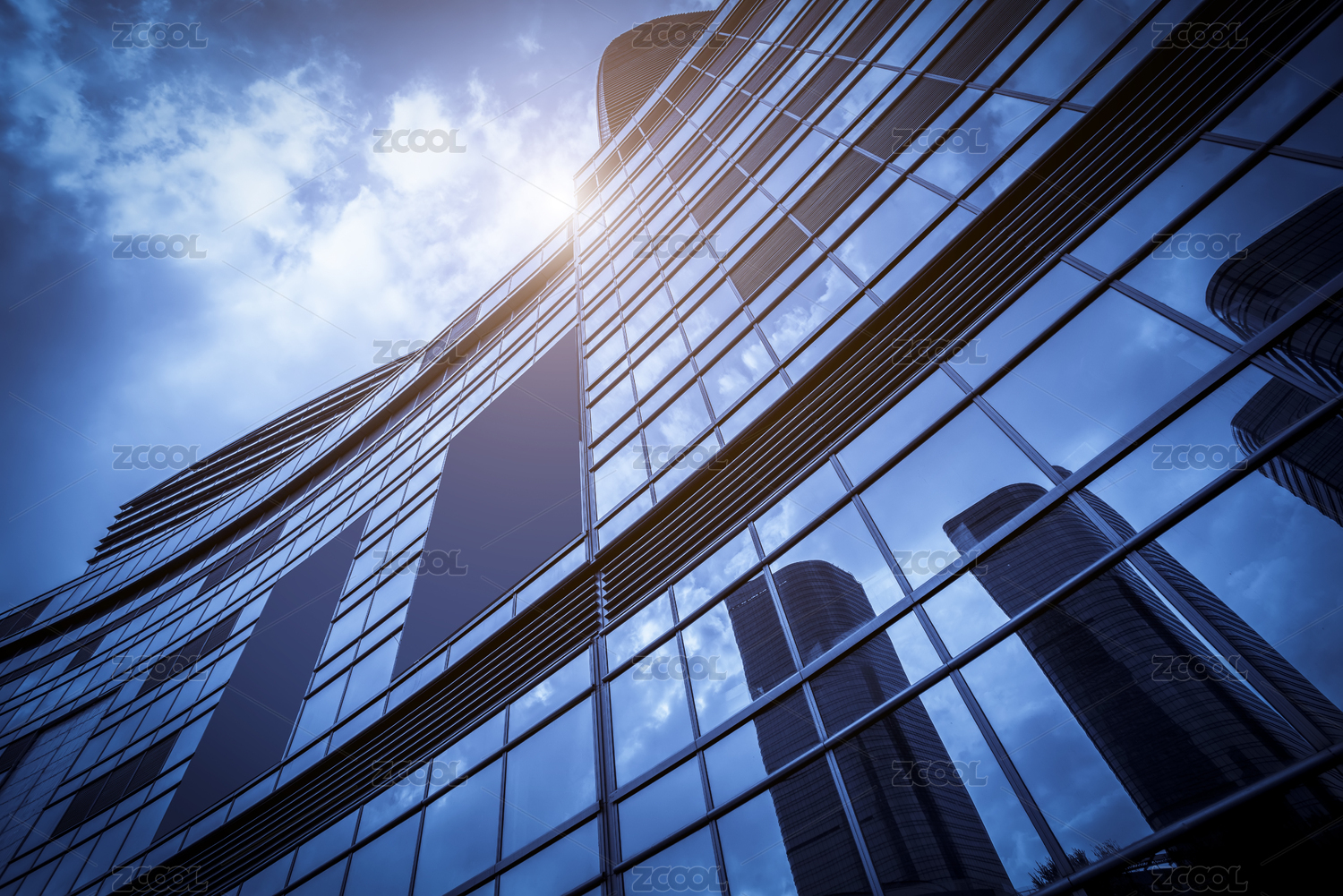 低角度仰视现代城市高楼大厦的玻璃幕墙