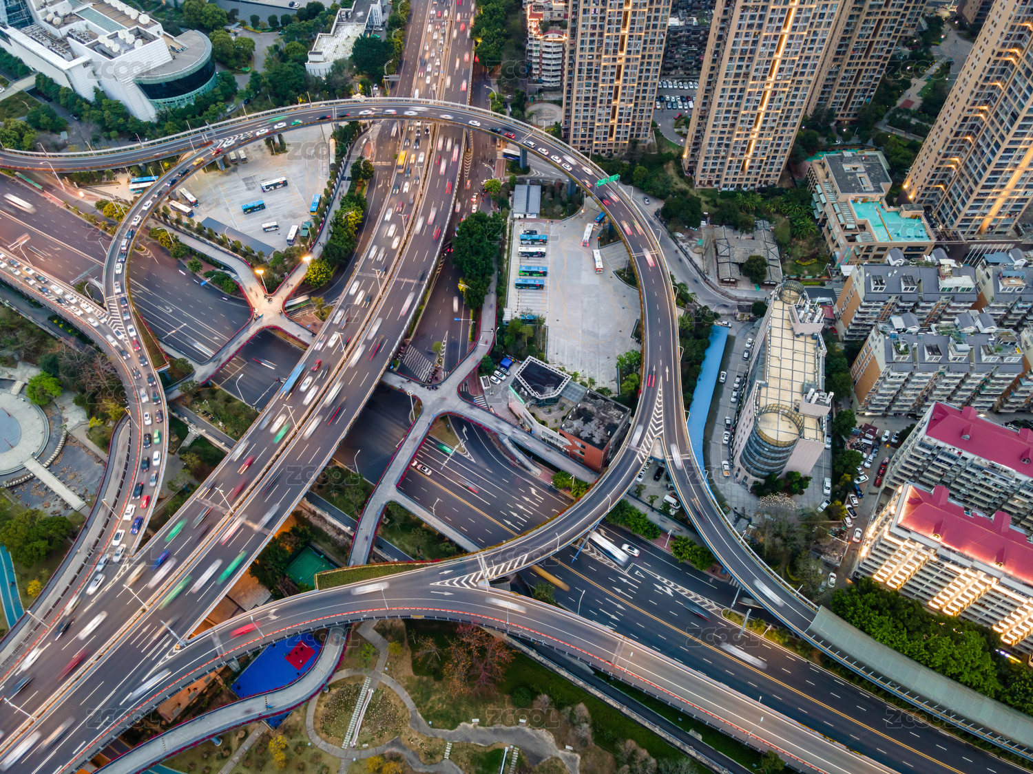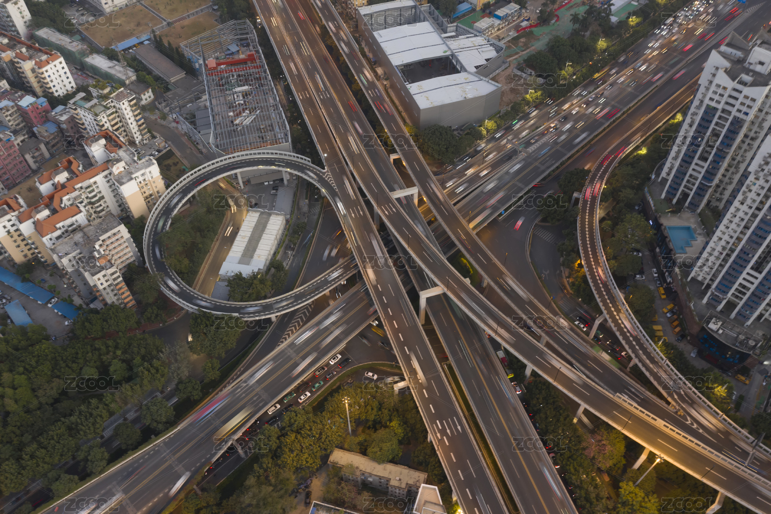 航拍傍晚时城市里的高架桥
