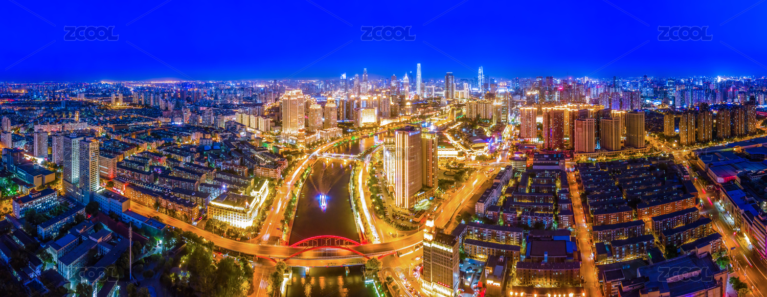 日落天津海河风景线小白楼商圈城市建筑夜景