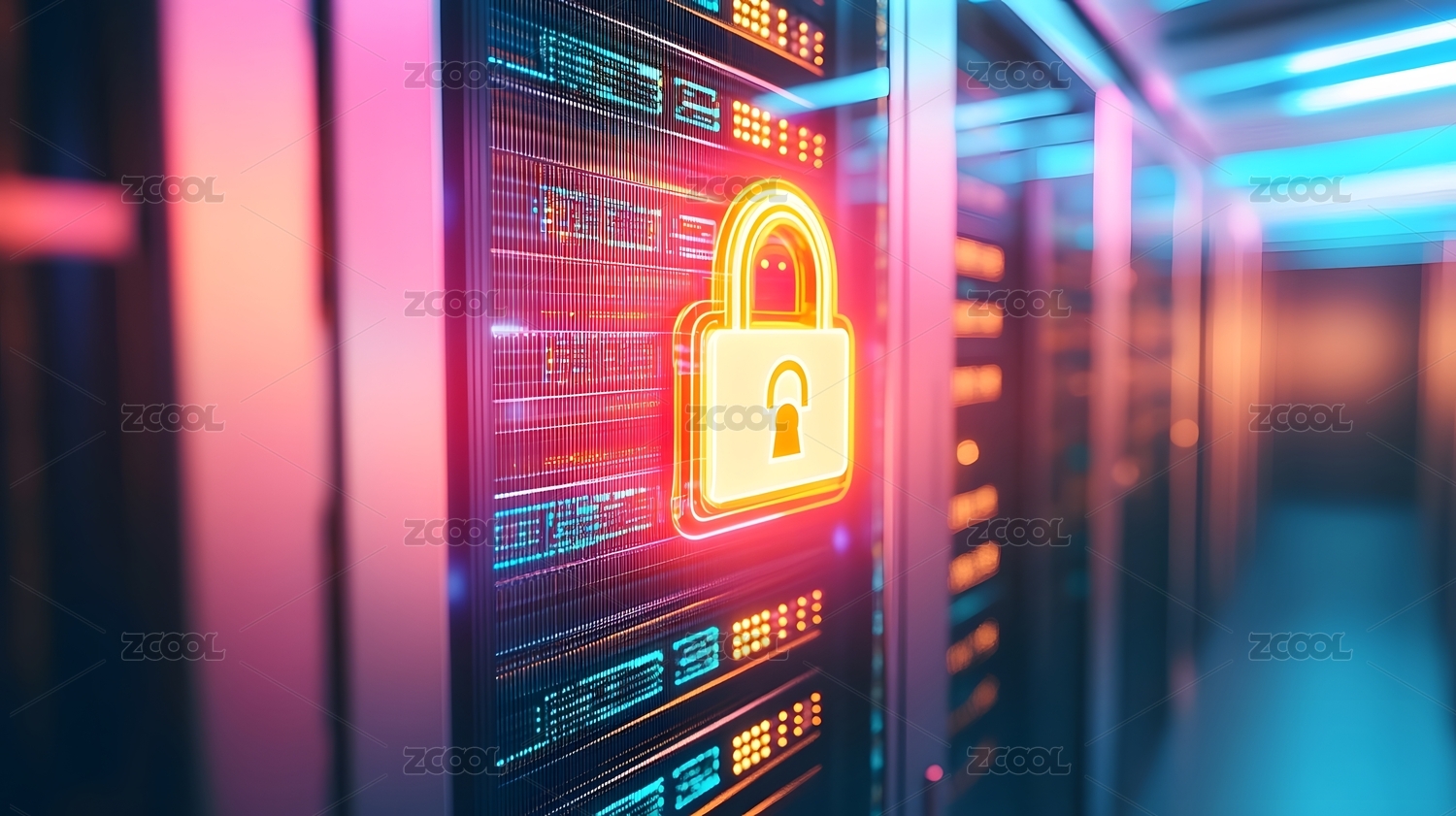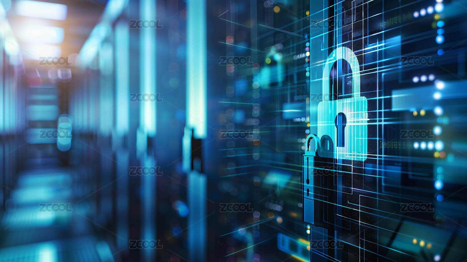 数据中心机房服务器科技背景下的安全图标,