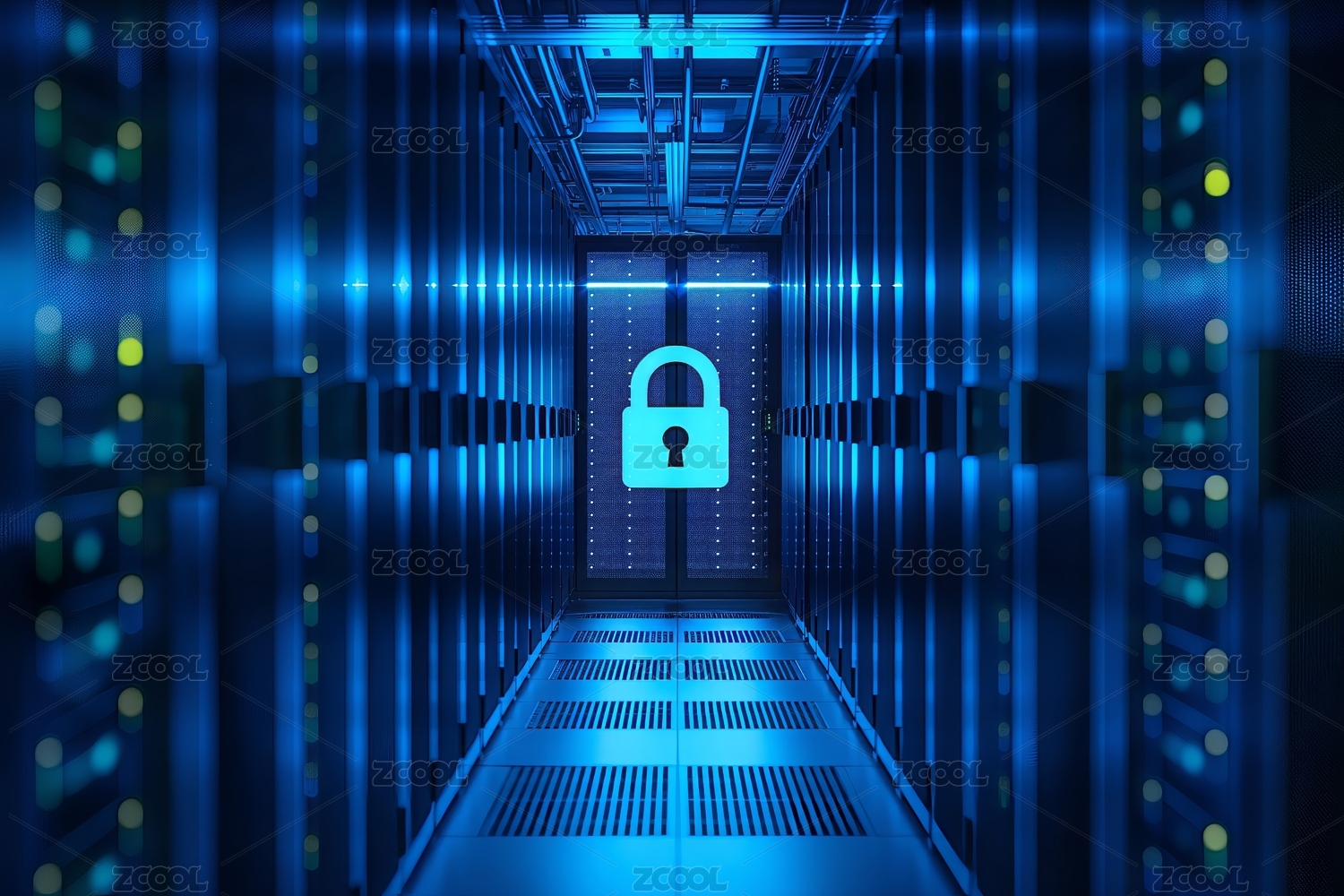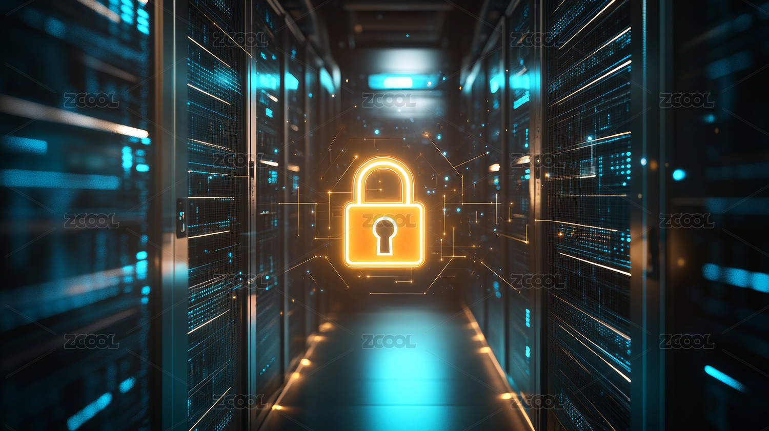 数据中心机房服务器科技背景下的安全图标