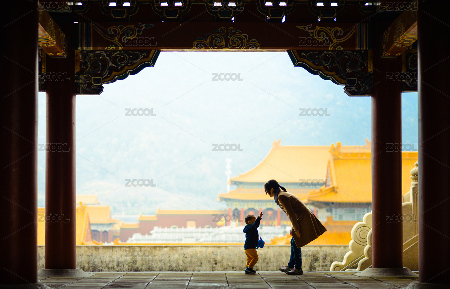 2岁孩子在横店影视城的明清宫苑的紫禁城
