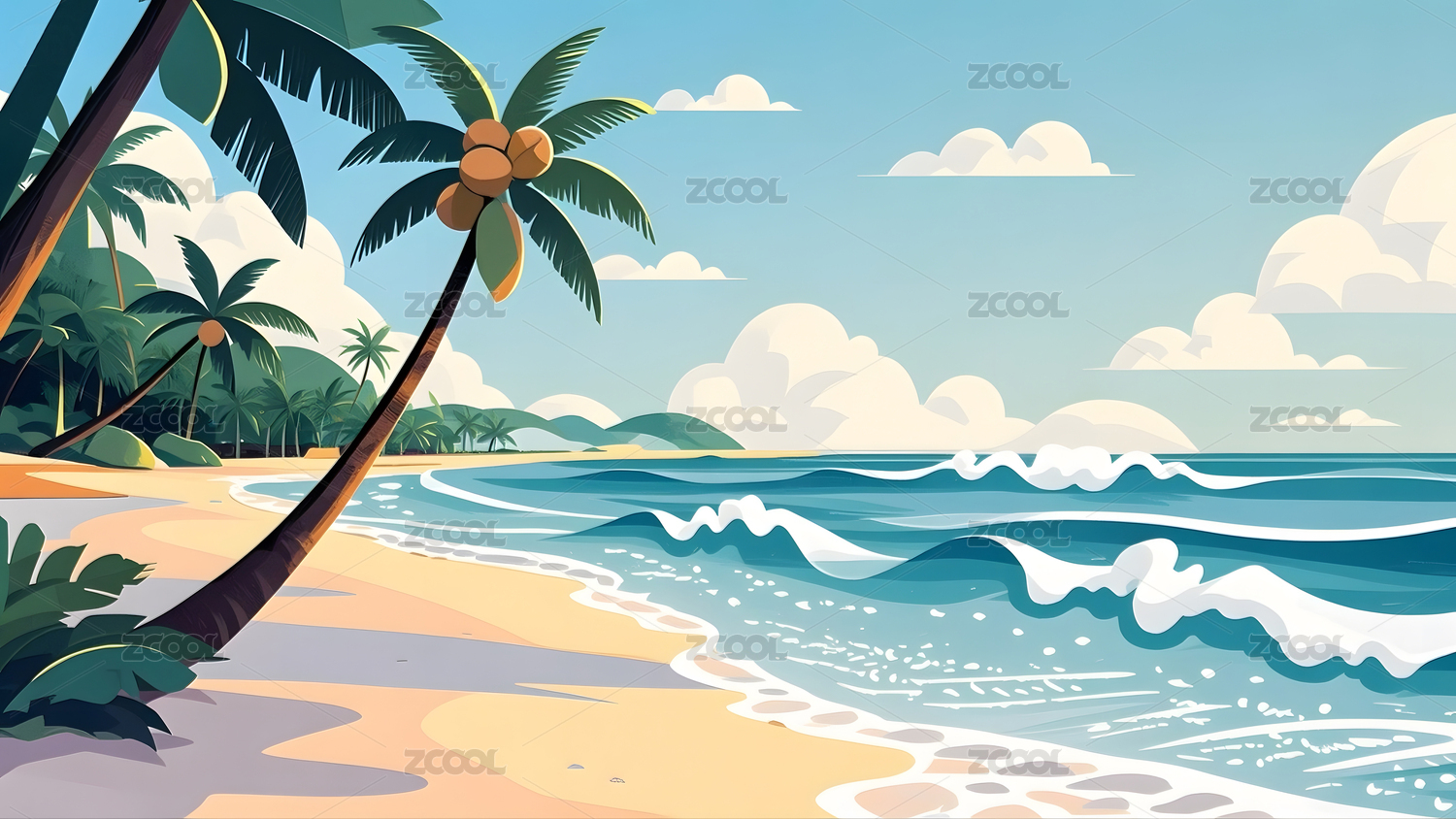 大海,海边,沙滩,插画,矢量图,度假,扁平画,风景,旅游