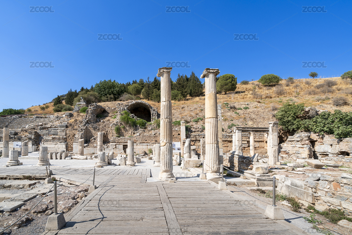 土耳其以弗所古城建筑石柱的遗址遗迹
