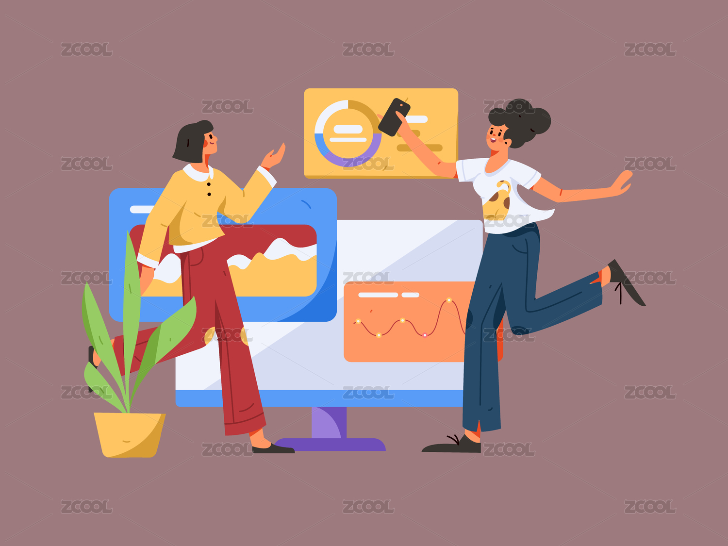 虚拟的人物社交沟通概念商业扁平矢量手绘插