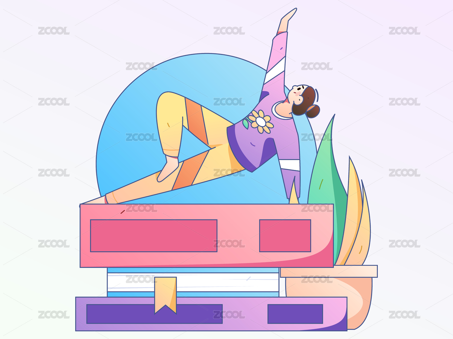 练习瑜伽身心健康扁平矢量人物概念运营手绘