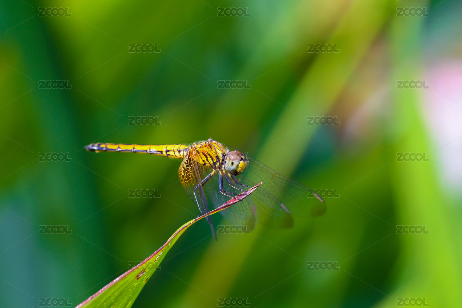 翠绿叶片上的蜻蜓