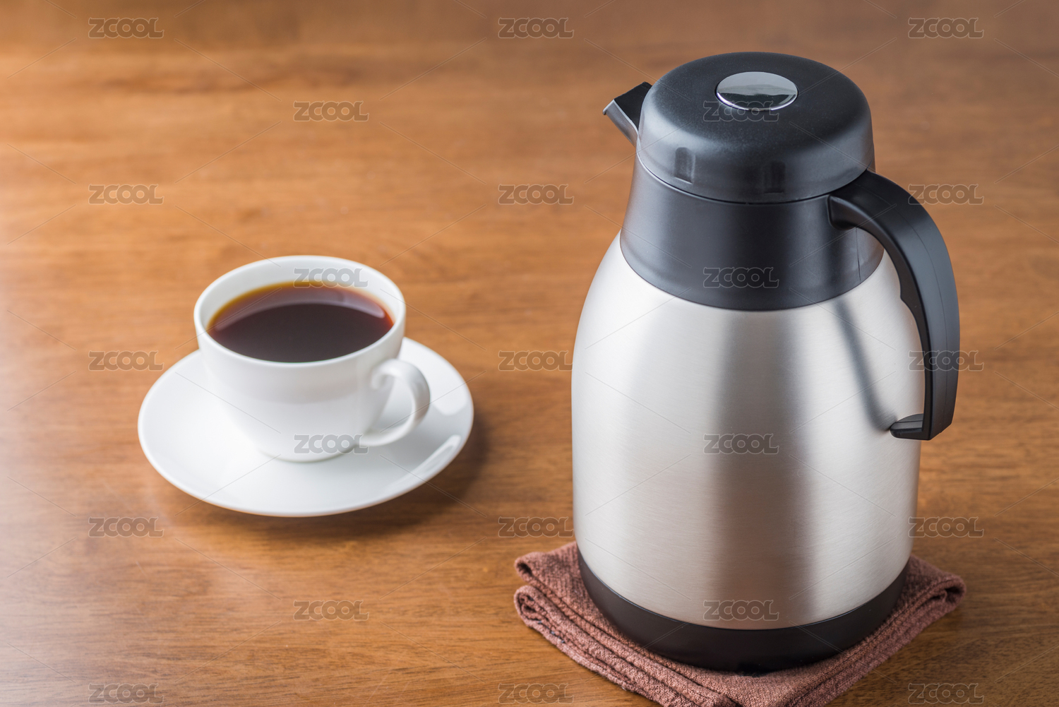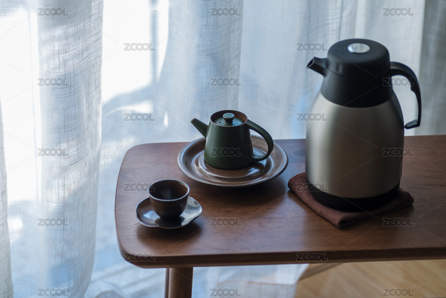 日式极简不锈钢保温咖啡壶和玻璃水杯
