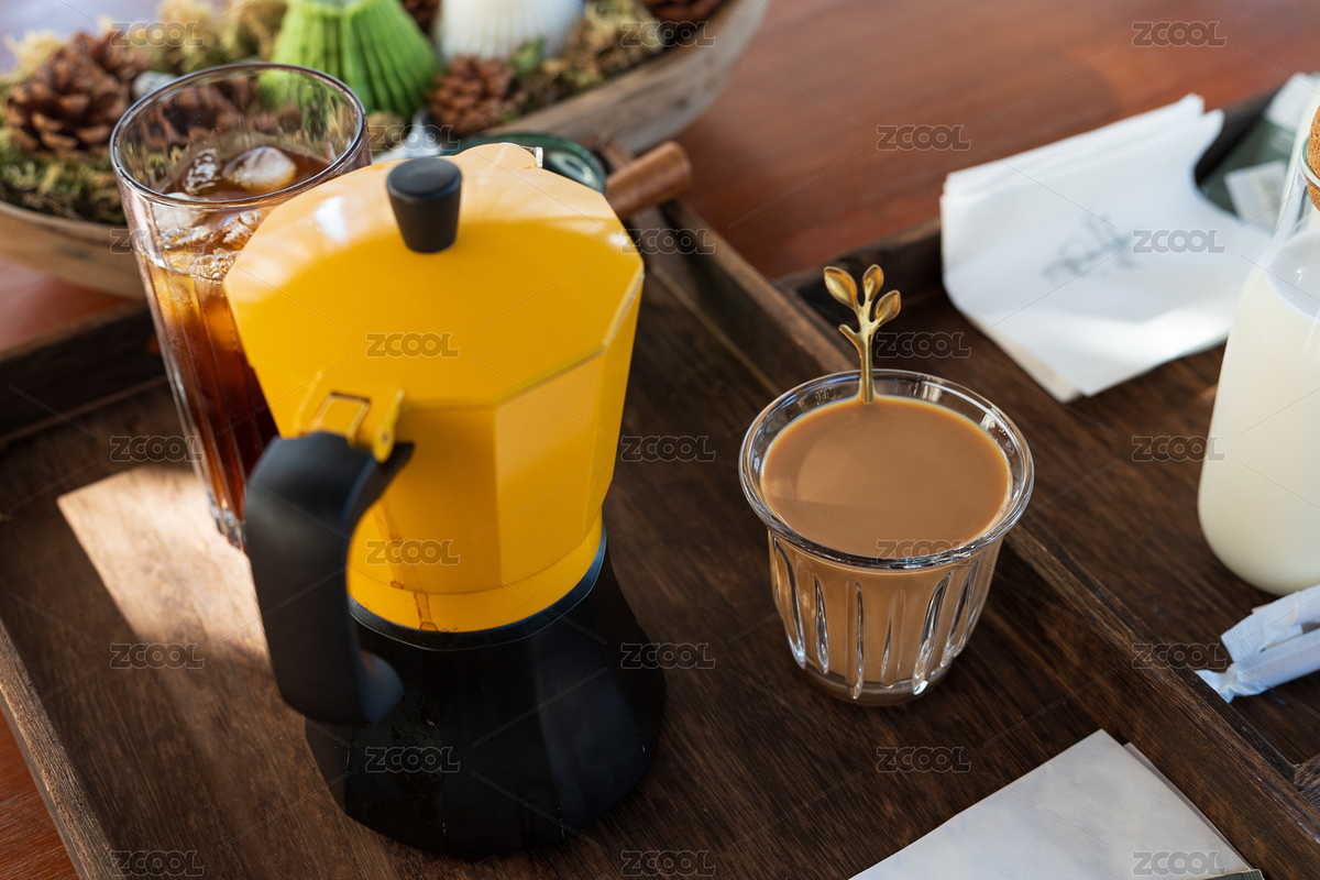 咖啡,摩卡壶,意式咖啡,咖啡杯,饮品,早餐,下午茶,咖啡馆,咖啡文化,黄色的摩卡壶