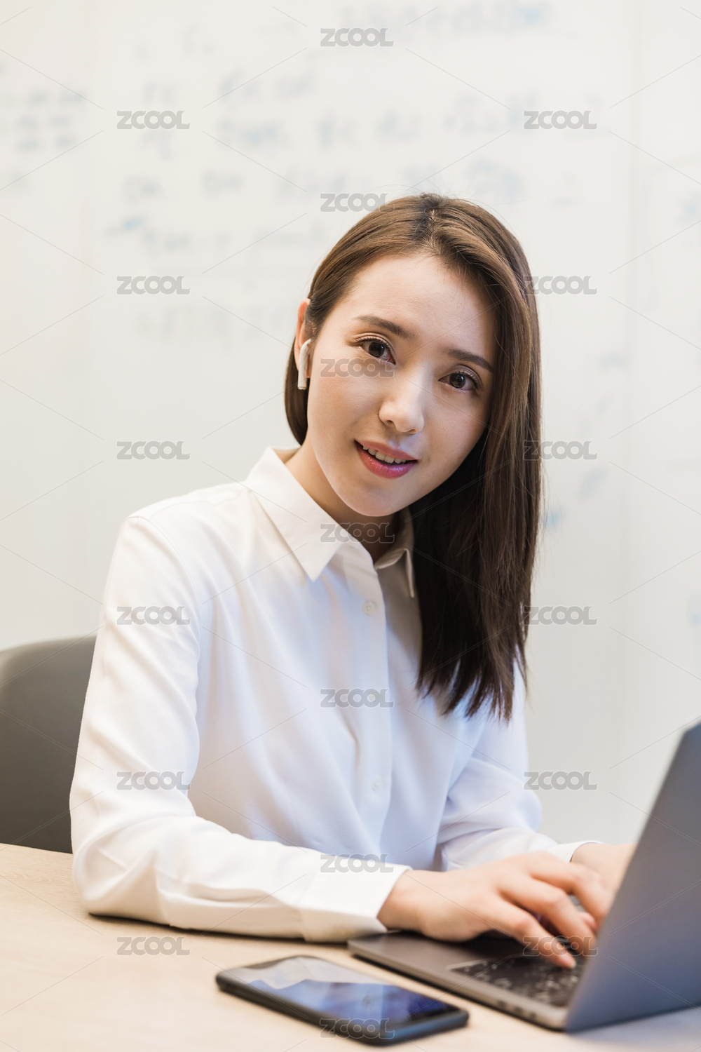 一位穿白衬衣的职业女性商务人士形象