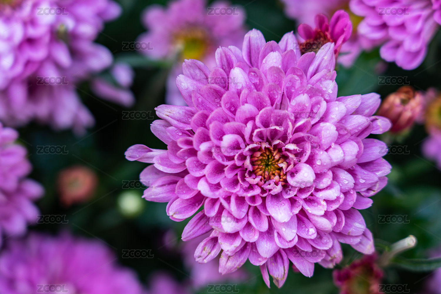 盛开的若干朵艳丽粉紫色菊花