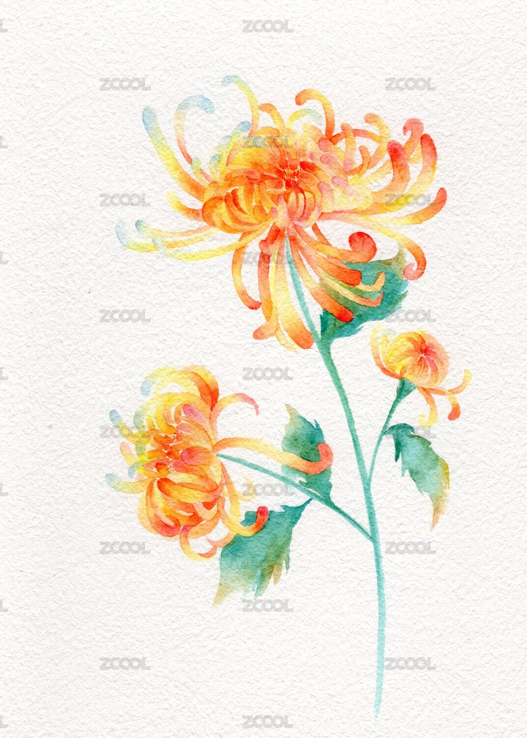 菊花水彩插画