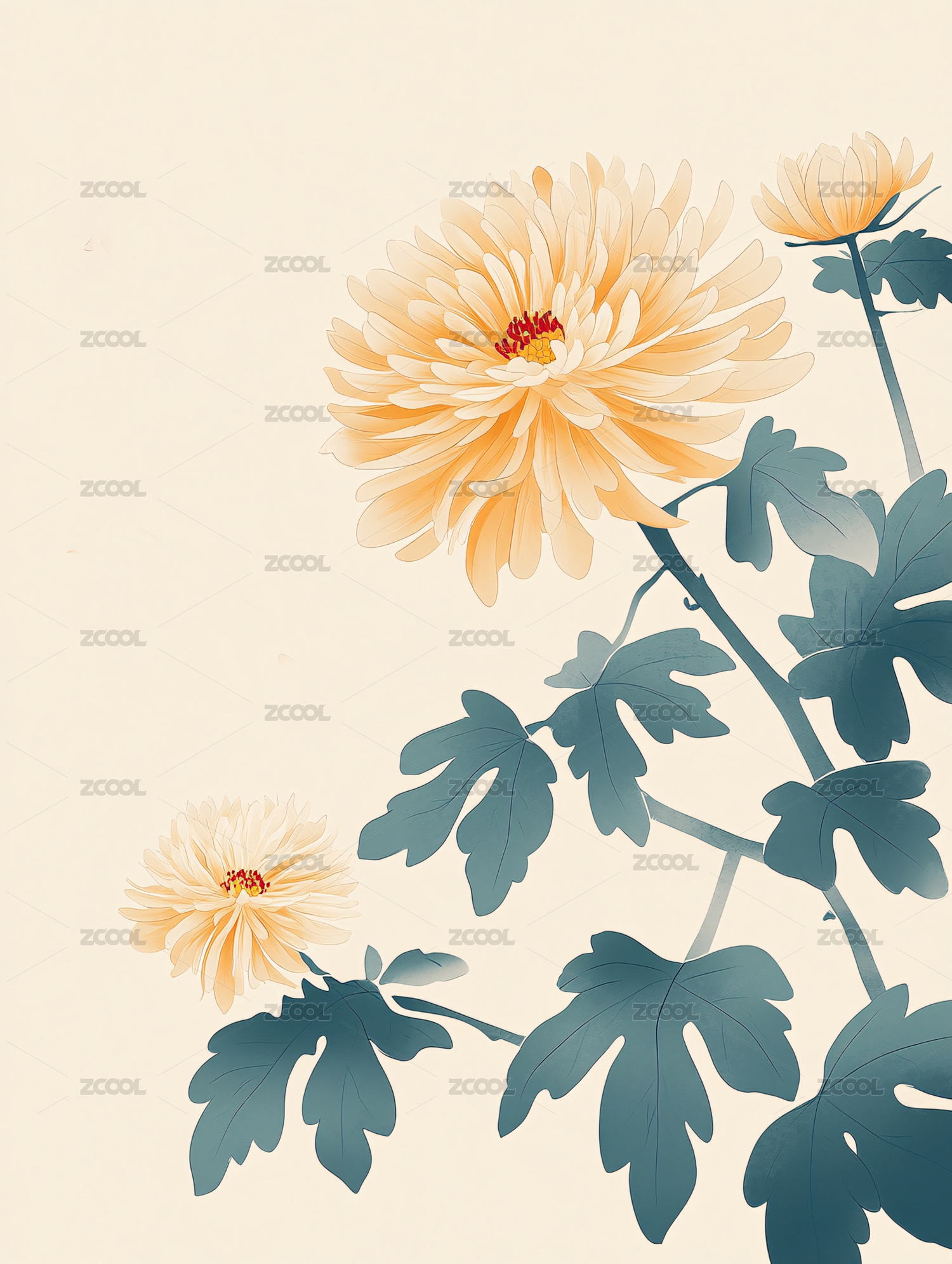 国潮风插画菊花