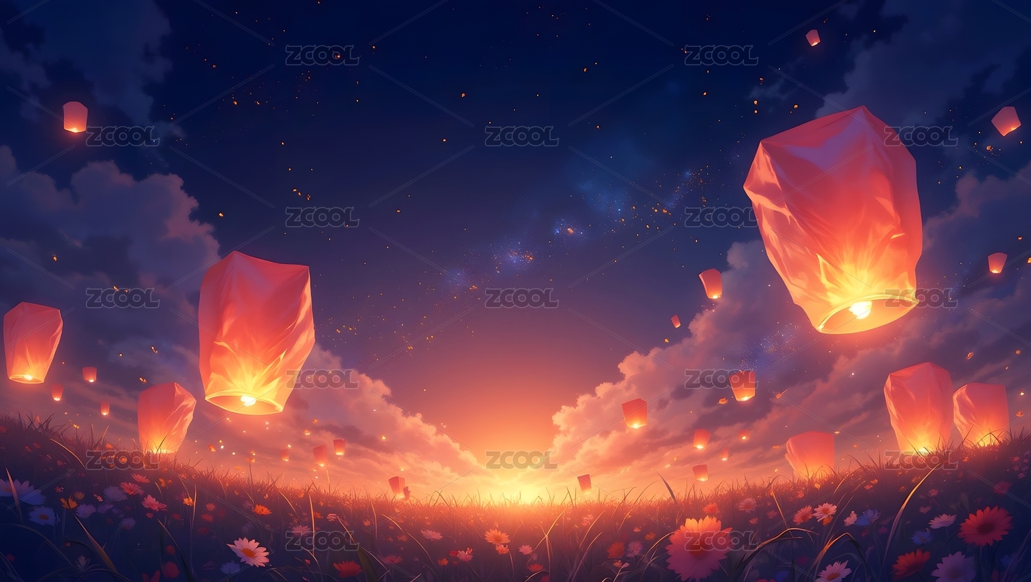 在中元节的夜晚放孔明灯借此思念已故亲人