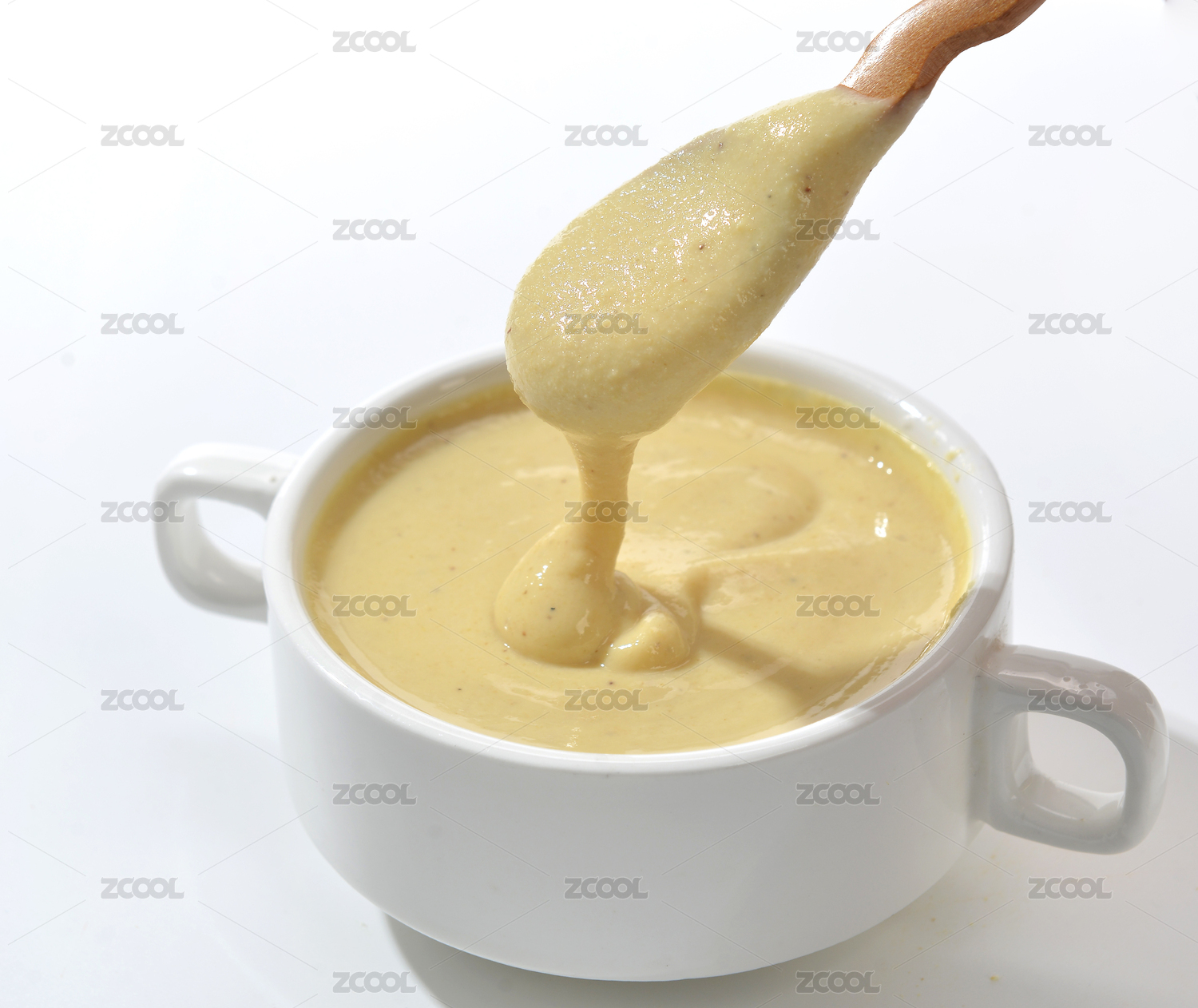 浅色背景上餐具里盛放的蜂王浆