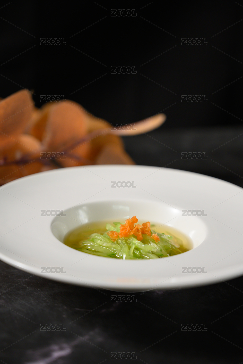 桌面上的碗里的美味可口的清汤青瓜丝