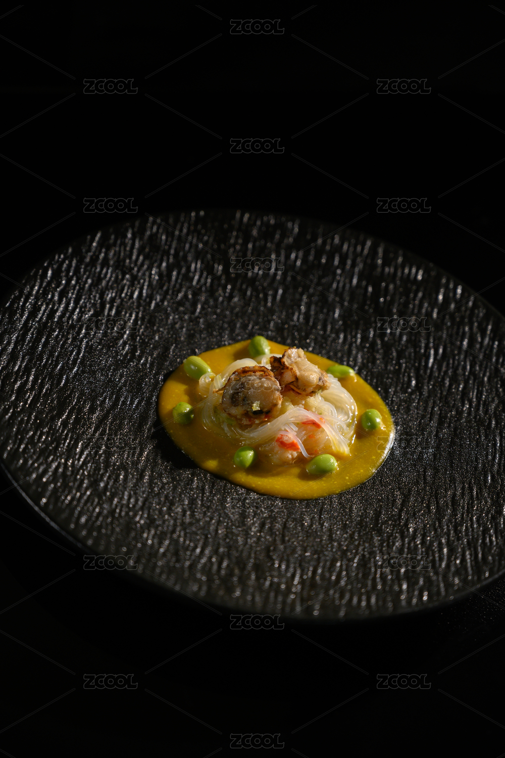 白盘里的素食菜品瑶柱料理