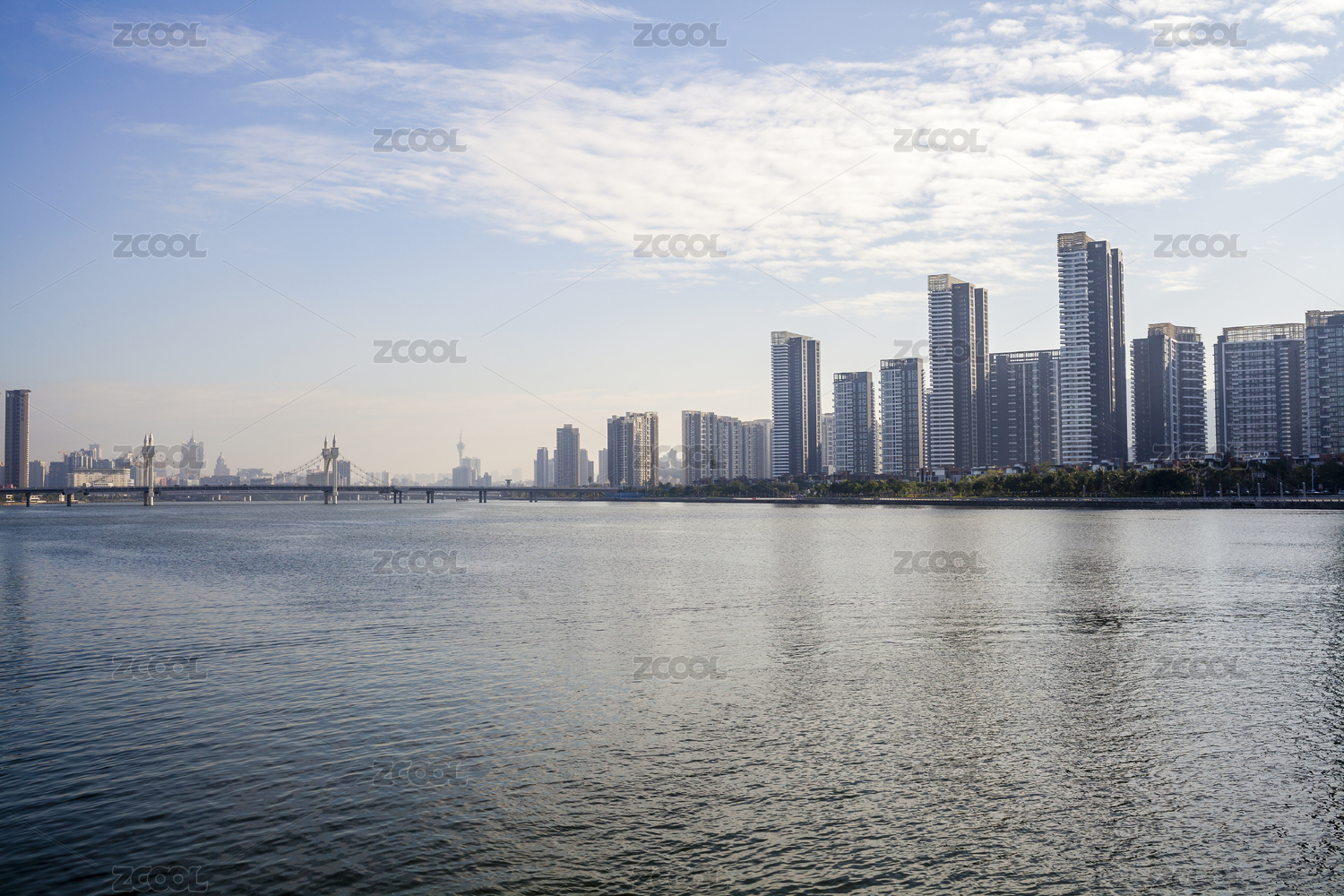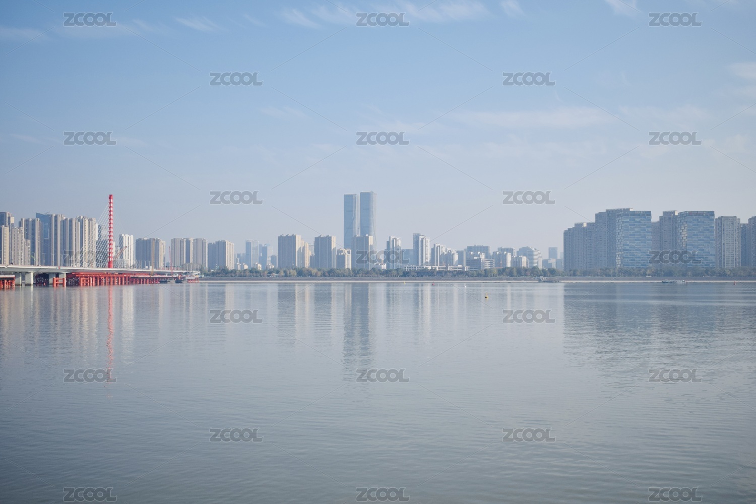 中国杭州钱塘江沿岸城市风光及城市建筑