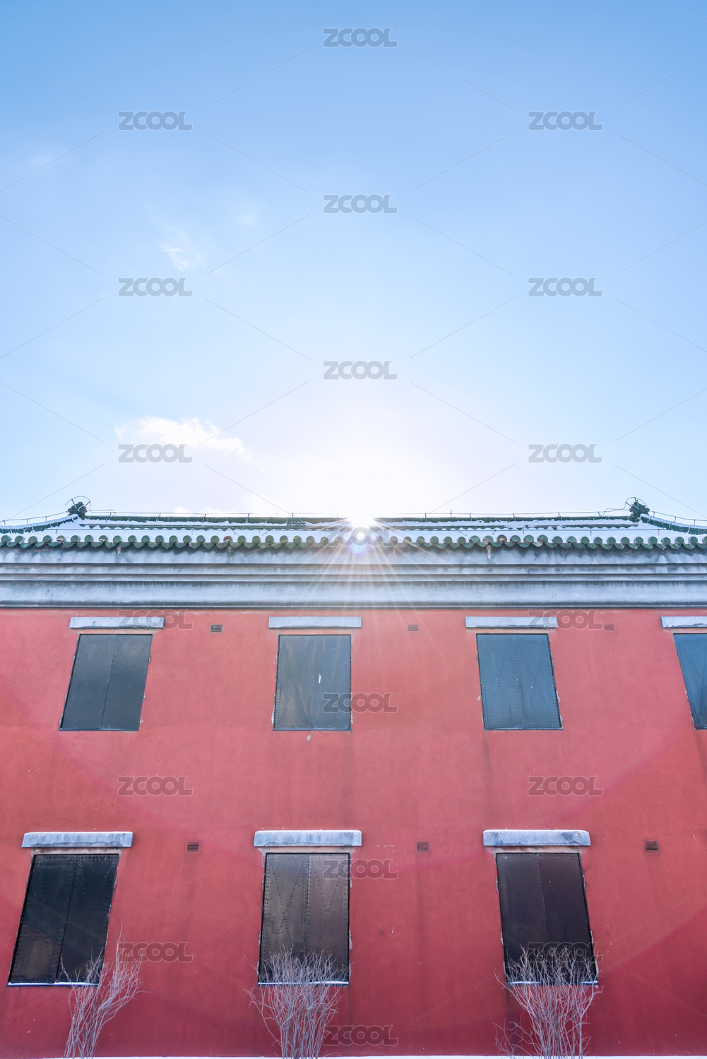 蓝天下的中国北京故宫博物馆的古宫殿建筑