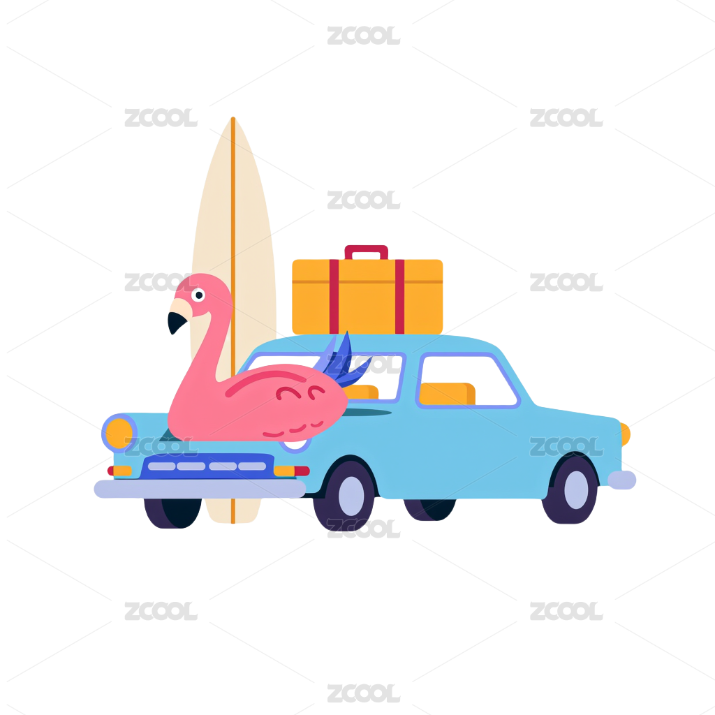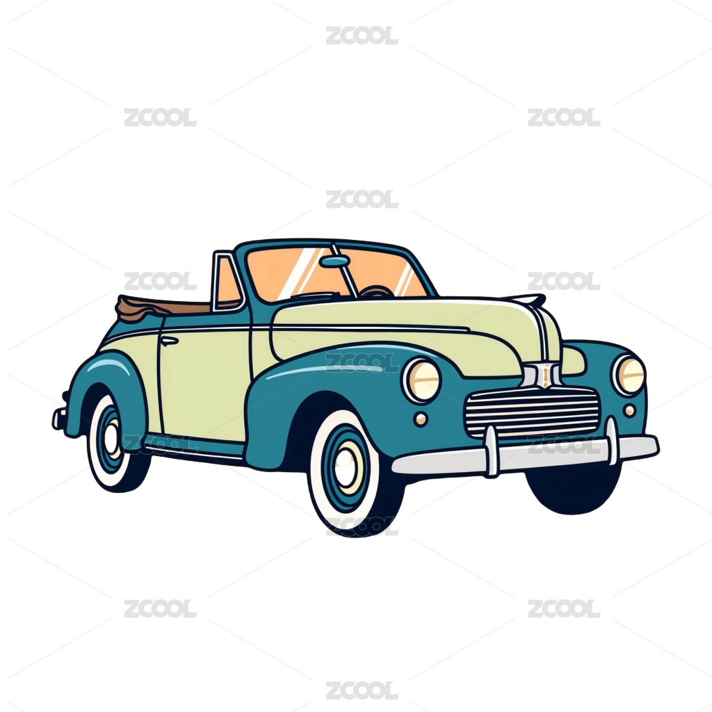 卡通风格的蓝色汽车