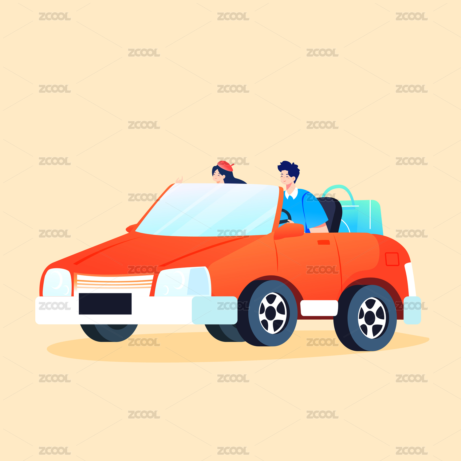 情侣自驾游矢量插画