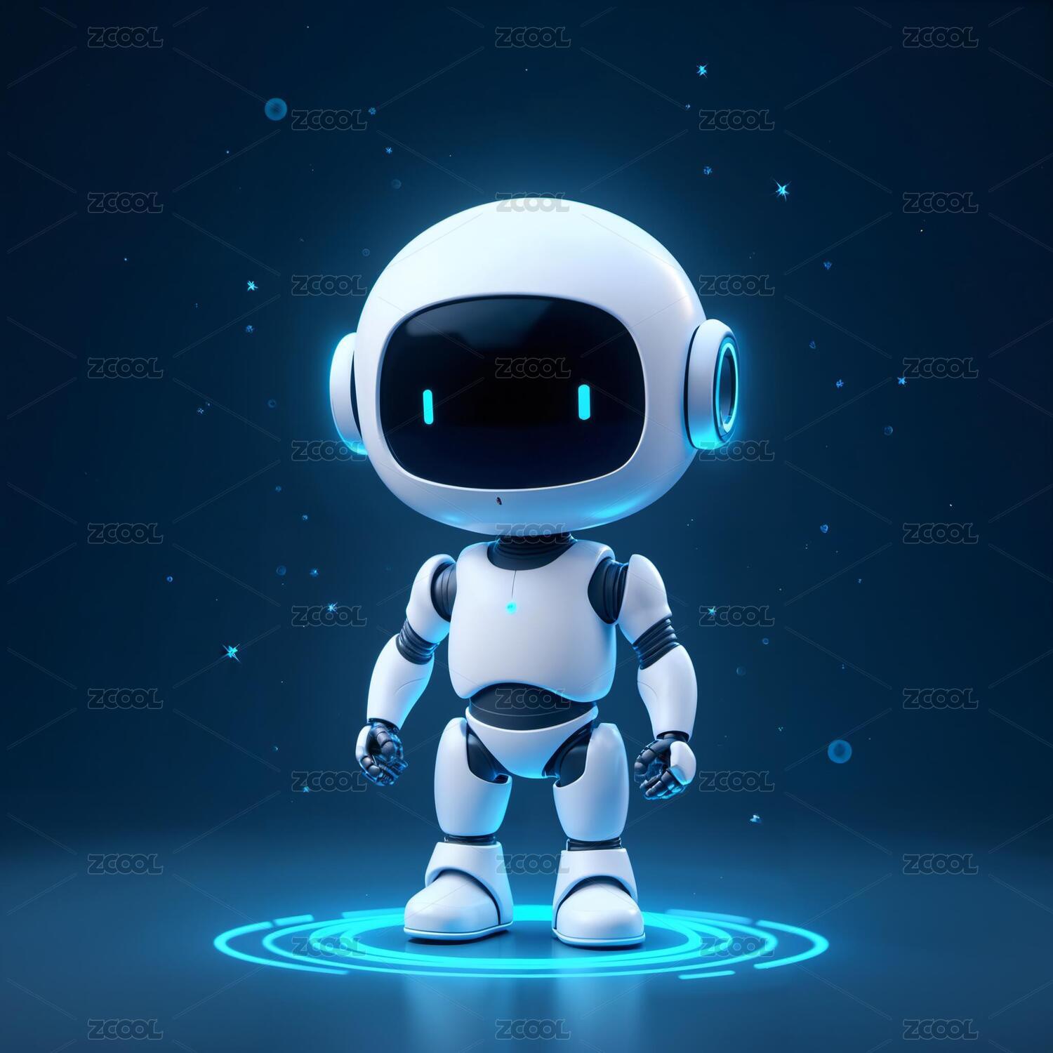 可爱机器人,蓝色背景下的科技伙伴